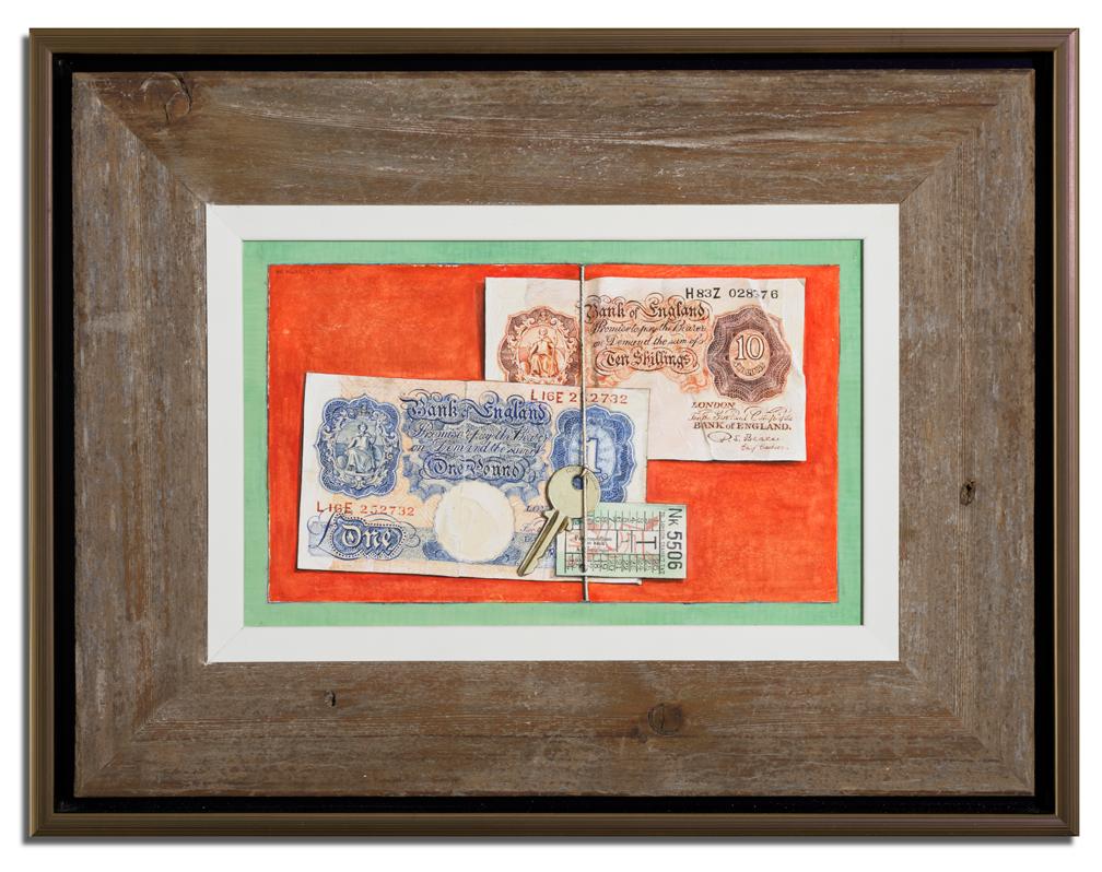 Still Life with Treasury Notes, c. 1955 mixed media, 6.5” x 10.5”
