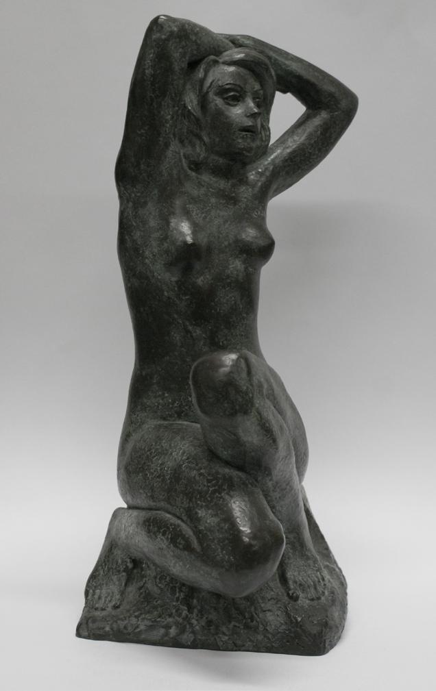 Awakening portrays an expressive figure, rendered with smooth, flowing lines and a serene demeanour. Mol’s classical training is evident in the anatomical precision and the harmonious proportions of the figure. The sculpture’s title, Awakening, suggests a moment of transition or emergence, which is reflected in the gentle posture and upward gaze of the subject. This work embodies Mol’s ability to capture subtle emotional states, inviting viewers to contemplate themes of renewal and introspection.