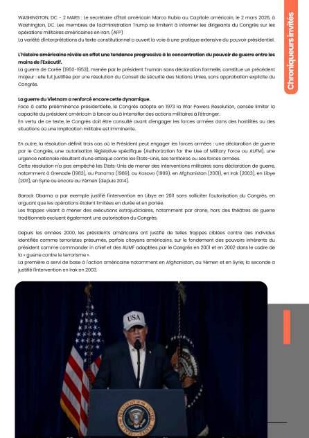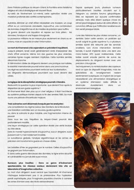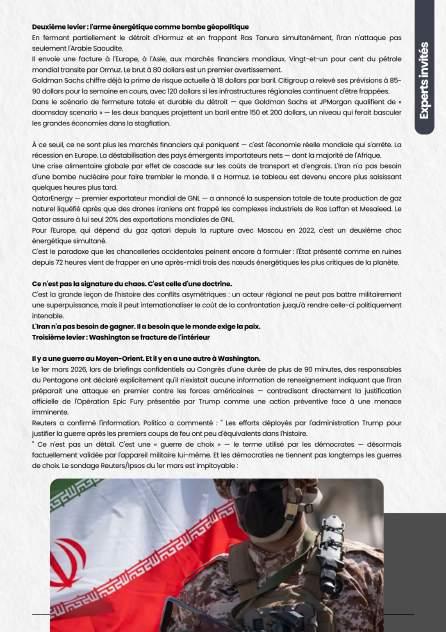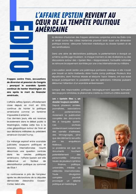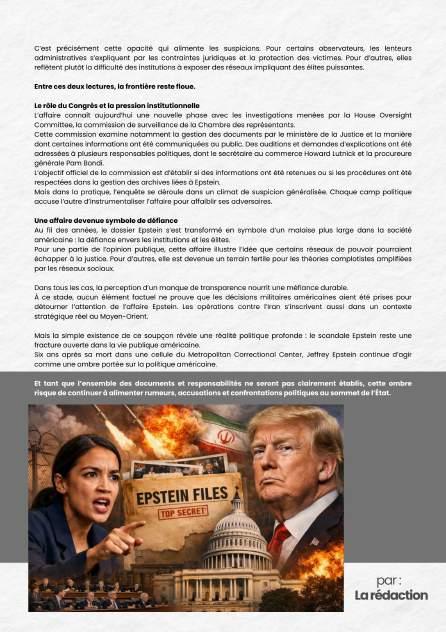 يتناول هذا العدد من مجلة كتاب الرأي العدد 23 بشكل رئيسي على إعادة ظهور قضية جيفري إبستاين في المشهد العام، وسط شكوك برلمانية حول استخدام الضربات العسكرية ضد إيران كأداة لتشتيت الانتباه عن فضائح داخلية. كما يستعرض النص الصراع الدستوري بين سلطات الرئيس والكونغرس فيما يخص إعلان الحرب، مشيراً إلى توسع النفوذ التنفيذي في عهد دونالد ترامب. بالإضافة إلى ذلك، تقدم المصادر رؤية نقدية حول تآكل النظام الدولي القديم وبروز قوى عالمية جديدة في ظل توترات جيوسياسية متصاعدة. أخيراً، يتضمن العدد إشارات ثقافية ومجتمعية تتعلق بمناسبة شهر رمضان المبارك بتصاميم عصرية.