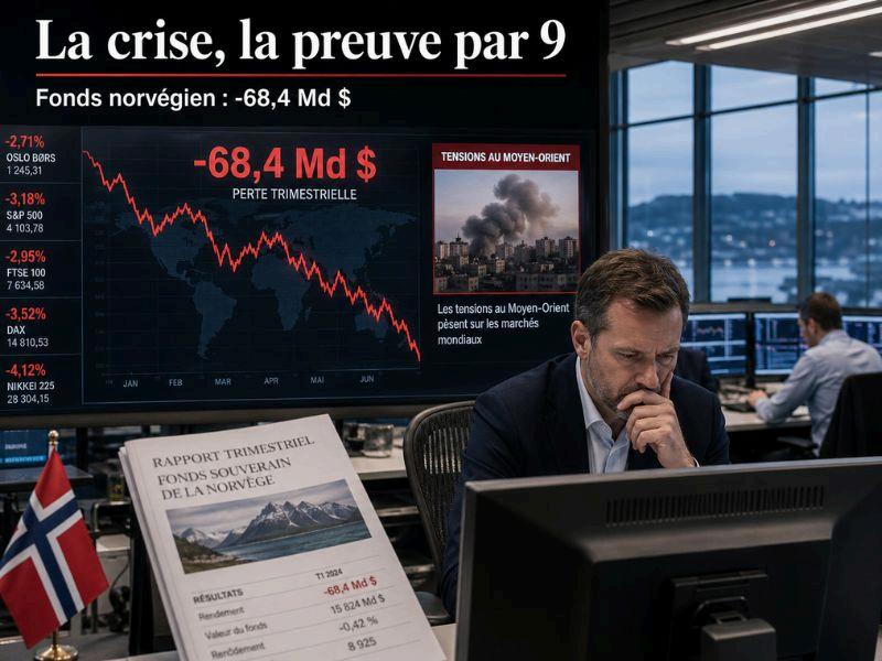 Celleannoncéeparlefondssouverainnorvégienenest une Au premier trimestre 2026, le plus grand fonds souverainaumondeaenregistréunepertecomptable de 636 milliards de couronnes norvégiennes, soit environ 68,4 milliards de dollars, avec un rendement négatif de 1,9 % À lui seul, ce chiffre dit beaucoup de l’état réel de l’économie mondiale : la crise n’est plus une hypothèse, elle est devenue une ligne dans les comptesdespluspuissantsinvestisseursdelaplanète.