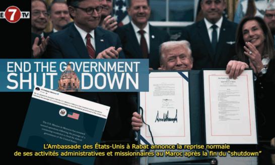 L’Ambassade des États-Unis au Maroc a annoncé, ce jeudi 13 novembre, la reprise normale de ses activités administratives et missionnaires au Maroc, à la suite de l’adoption par le Congrès Américain d’une résolution de financement provisoire pour le Gouvernement Fédéral qui met fin théoriquement au « ShutDown»