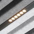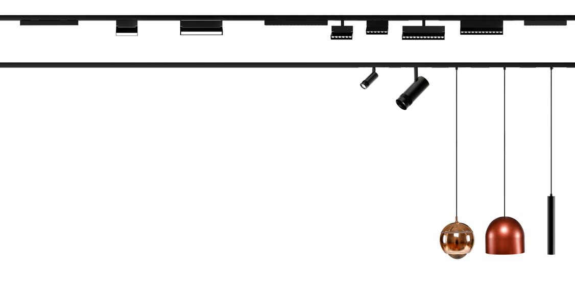 Flexibel einsetzbar als Haupt‑ oder Zusatzbeleuchtung: Linienleuchten, Spots und Pendelleuchten in einem intelligenten Stromschienensystem. Die Niedervolt‑Str omschiene fügt sich perfekt zwischen die Lamellen der Hunter Douglas Decken ein und wird direkt bei der Dec kenmontage integriert. Das System lässt sich unabhängig vom Deckenmaterial – Holz, Filz oder Aluminium – ein fach auf jedem Hunter Douglas Tragsystem montieren. Die Linienleuchten werden magnetisch in die Schiene eingeklickt und schließen bündig mit den Lamellen ab –für ein klares und zeitgemäßes Erscheinungsbild.