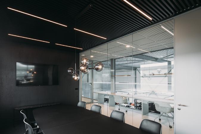 ■ Die Linienleuchte integriert sich nahtlos in die Decke