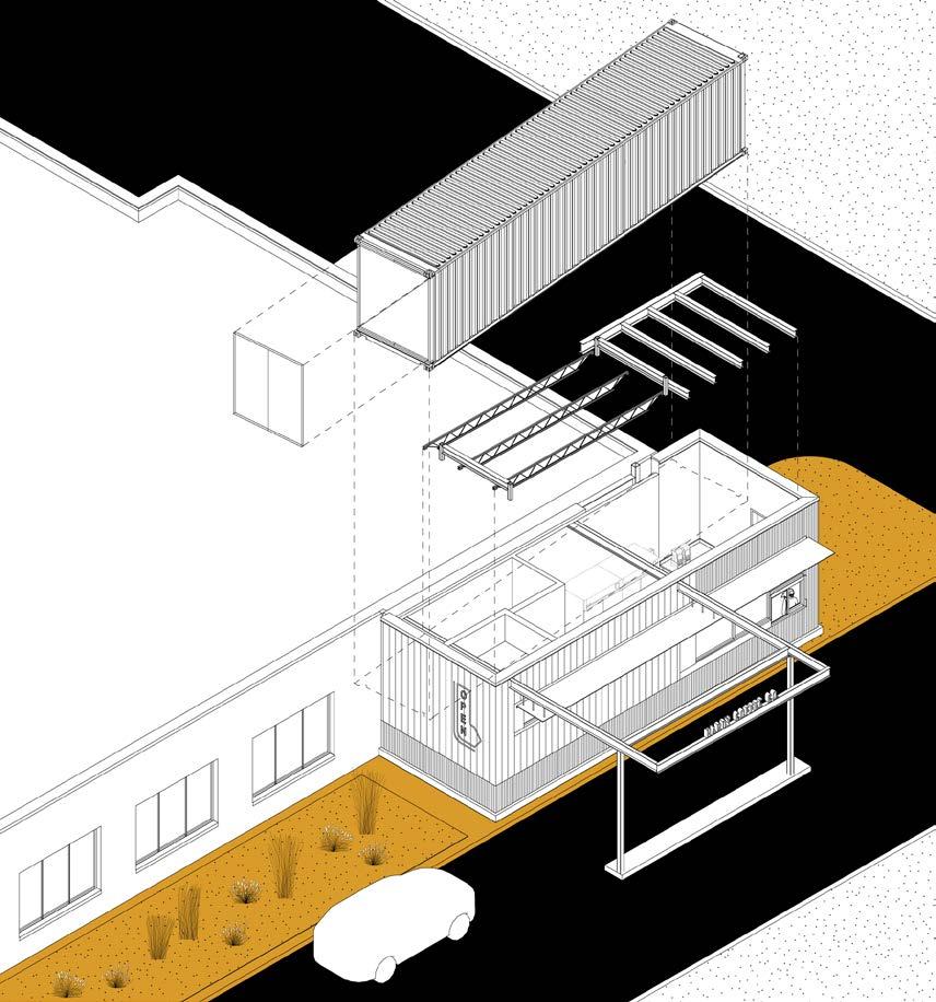Each year TACK submits their projects for award consideration. Part of my role at the internship was to create drawings and diagrams to graphically represent their designs. This coffee kiosk exists along a major road, in order to call attention to the shop, the structure of the building itself became a huge part of the sign design and wayfinding for this location. I was lucky to work on the initial schematic design of this project, and was on site for the project photography, so I had a better understanding for the type of representation it would need for the award submittal. I wanted the diagrams to really describe the insertion of the shipping container to the site as well as the unique functional design.
