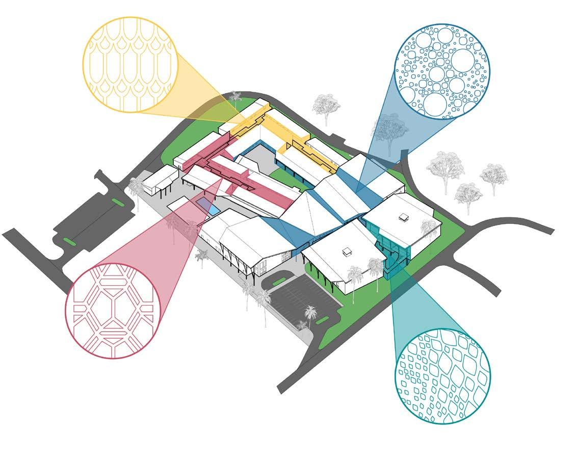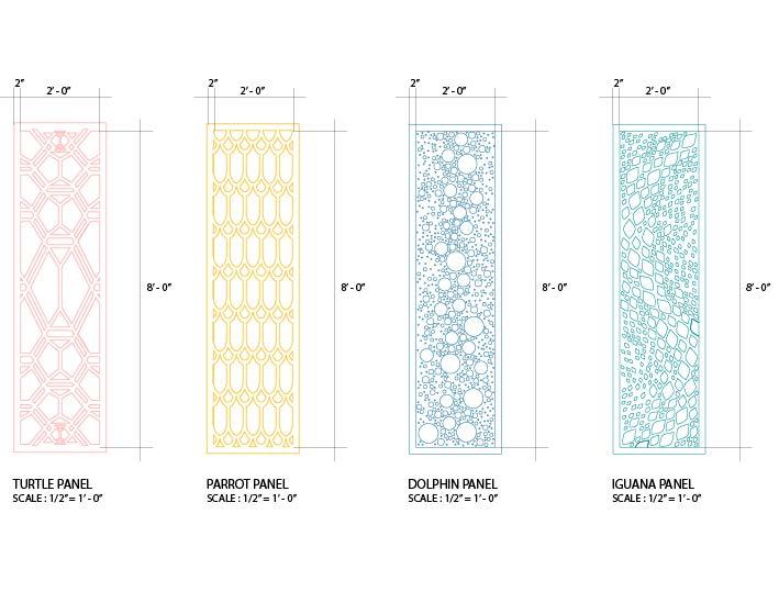 and the parrot, turtle dolphin and iguana can be found in the site design as well as the graphics and custom screenwalls throughout the campus. This aspect allows the students to visually interact and engage with their surrounding learning environment.