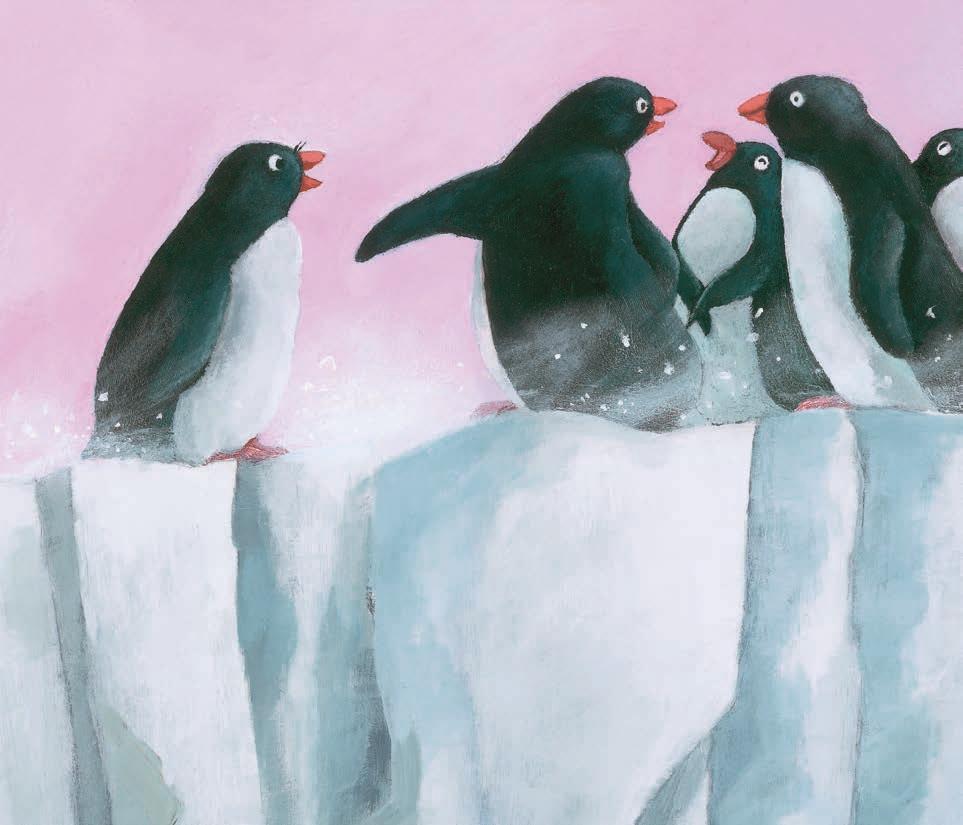 Pero el día que empezó a hablar, los pingüinos se dieron cuenta de que no era como ellos.