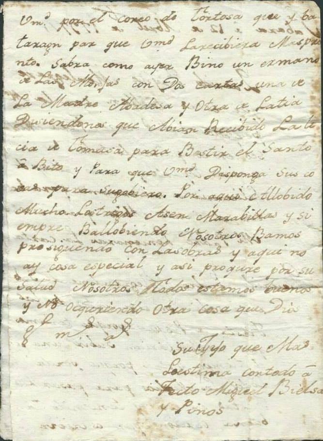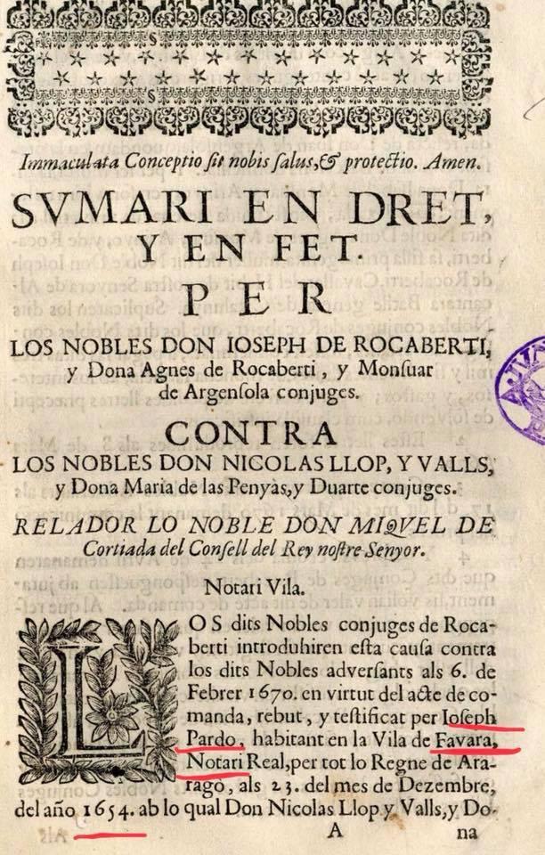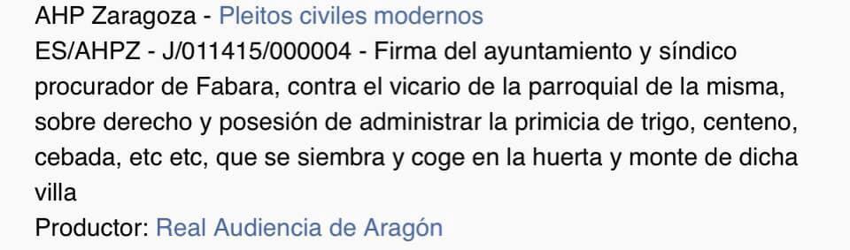 En el AHP-Zaragoza se conserva un pleito de mis ancestros Ramón Bielsa, su mujer Antonia Roch y su hermano el sacristán José Bielsa contra el mercader francés Felipe Desplán y Nogués que les reclamaba dos mil quatrocientas cinquenta libras y trece sueldos jaqueses cuando Fabara andaba pasando de manos entre “el gobierno intruso” y Fernando VII, en 1814. Ramón era pariente de Antonio Portolés y Josef Balimaña.