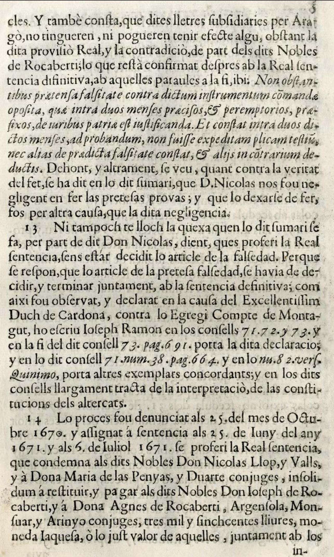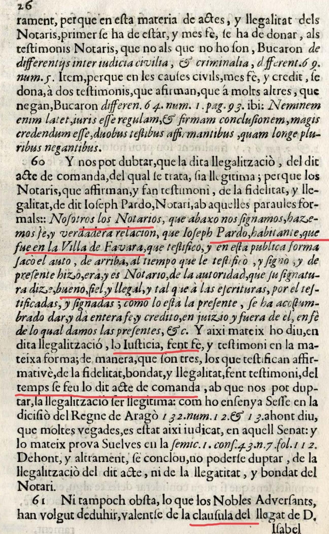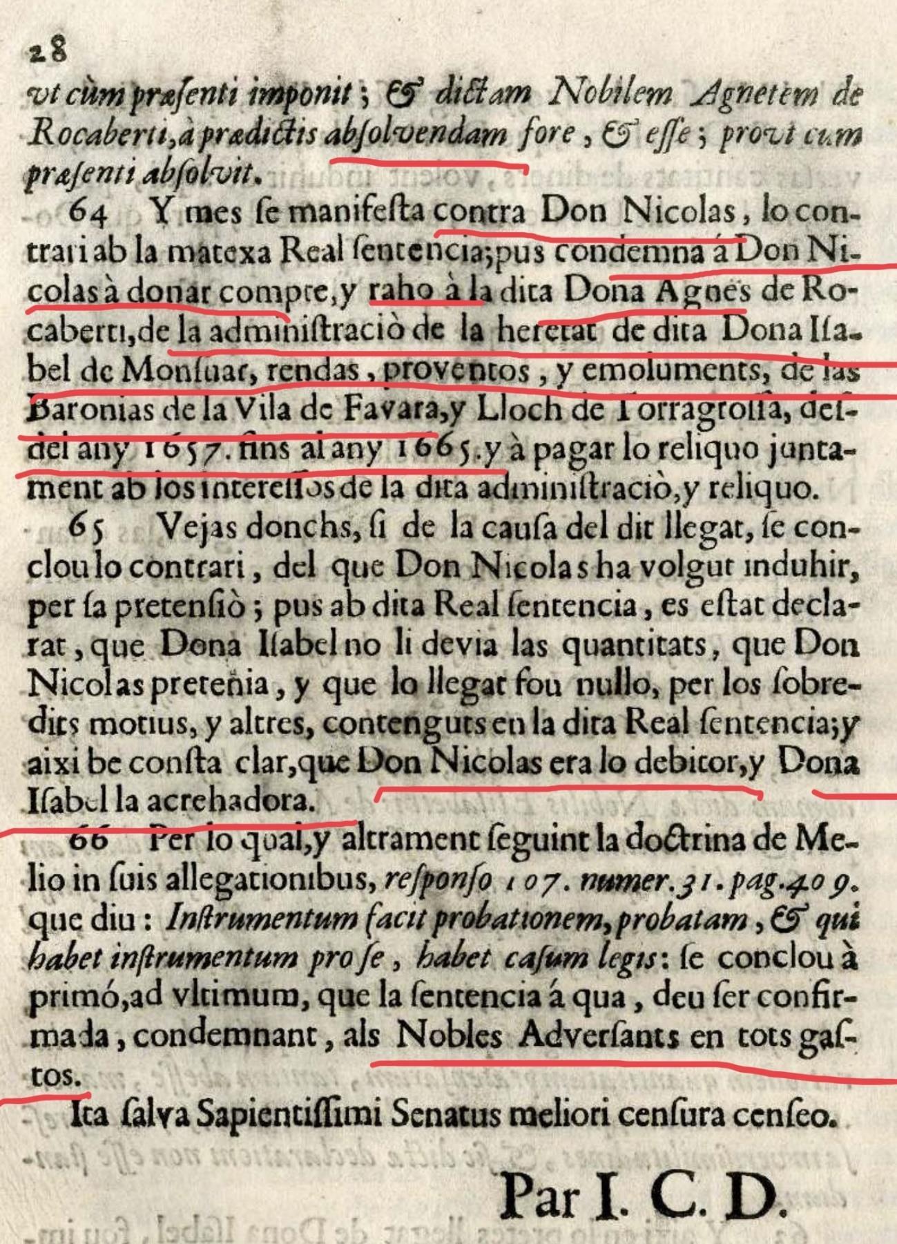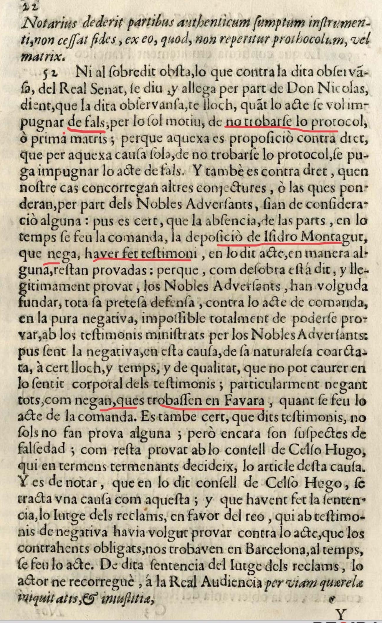 esto no es tenido de responder en Aragón, interloquendo sentenciamos que el dito Guillelmo faga dreito por fuero de Aragón a Blascho de Alagón de la dita demanda en nuestro poder et en Aragón. Et ia sia que el fuero de Aragón diga que en aquel logar deva prender dreito, on es la heredat de que es la demanda, non se usa en Aragón entre los richos omnes, que si el uno se clama del otro, que vaya prender dreyto d'el a la heredat del otro, de la qual aquel se clama, porque d'aquello se podria seguir gran mal et peleyas, e demás no an tales justicia ellos que de tan grandes cosas pudiessen ni·n sabiessen jutgar ni·n podiessen destreyner las partes a servar aquela que dreito seria. Dezimos encara enterloquendo, que la demanda de Favara se deve jutgar assí como la demanda de Cueyllar por fuero de Aragón et en Aragón, e dezimos encara, enterloquendo, que la demanda de Almedíxar e de l'Algimia e de Buey Negro de Argelida, et de la heredat de Morella, se deve jutgar por fuero de Valencia et en el reyno de Valencia, porque son de aquel reyno et ad aquel fuero poblados, et denant Nos o denant aquel que Nos y assignaremos. Lata fuit hec sententia in Aljaferia domini regis Cesarauguste, pridie idus junii anno Domini Mº CCº LXº quarto, presentibus Guillelmo de Caneto, Roderico de Liçana et Bertrando de Proixencio et Bernardo de Caaralt, Arnaldo de Fontana et Luppo Guillelmi d'Oteyça et pluribus aliis. Universitat Jaume I. Castelló. Arxiu Virtual Jaume I - http://www.jaumeprimer.uji.es - Document nº 000314