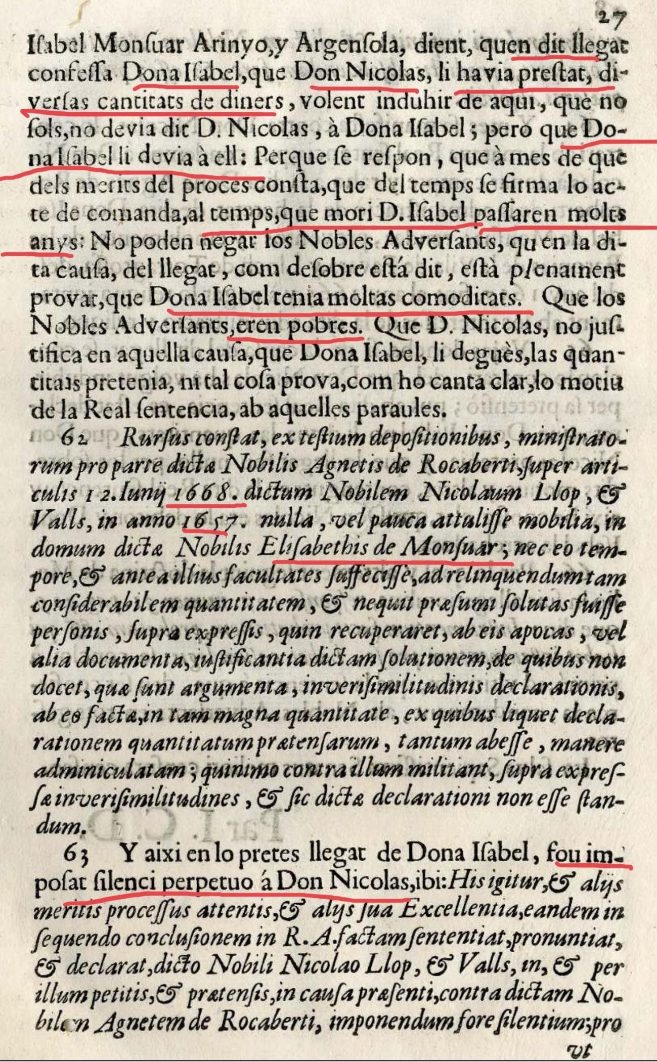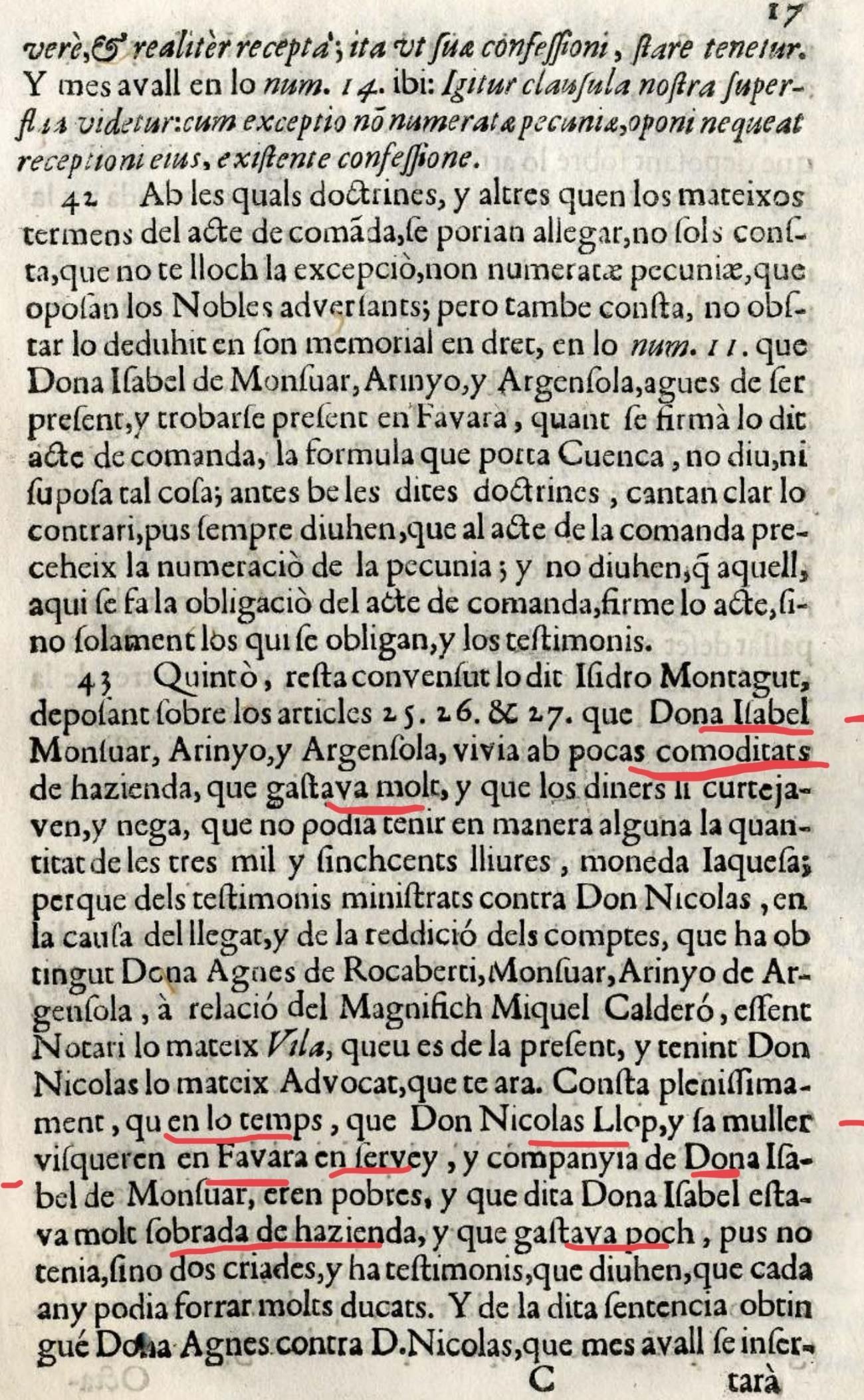 (hija de Gerónimo) Elisabet (Isabel) Monsuar de Ariño de Argensola (☨1665) - Juan de Argensola y Clariana (☨1657) (boda con dispensa en Torregrossa, 13-5-1629) (hija de Isabel) Inés de Argensola Monsuar de Ariño - José Rocabertí i Boixadors (boda, 20-agosto-1653)
