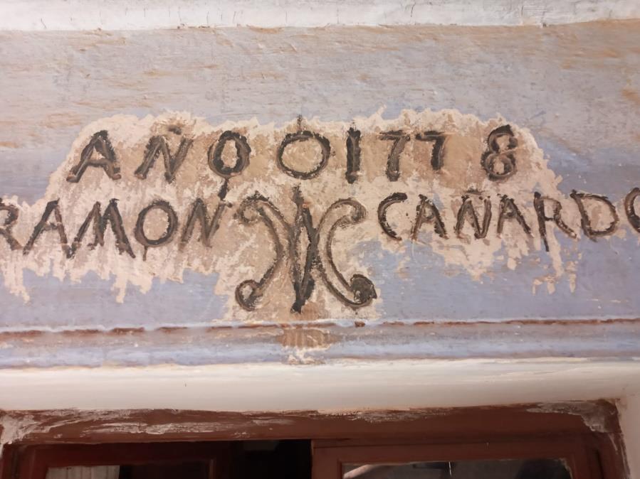 1º.- a Francisca Cañardo le tocó la parte alta de la casa con la parte del corral que le corresponde, situada dicha casa en la calle del Mesón, cuya parte alta es la que confronta con la llamada de San Juan, quedando la otra parte de casa y corral, que es la baja, para el menor Ramón Cañardo.
