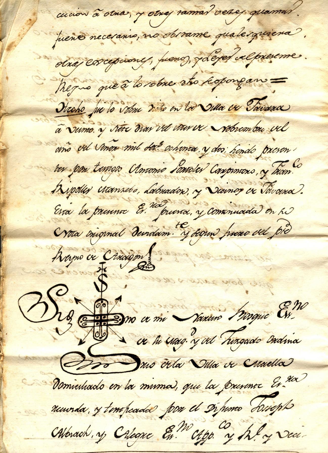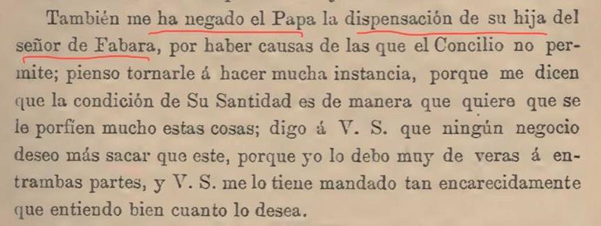 ... Nos Frey García López de Padilla, maestre de Calatrava... por los muchos servicios que vos D. Juan Galíndez de Sessé y vos Elvira López, su mujer, habéis hecho a nos y a nuestra Orden y haréis en adelante, por haceros merced que tenéis bien merecida, os damos por todo el tiempo de vuestra vida y de la vida del hijo o hija de ambos engendrado a quien transmitiréis conformes esta gracia, es a saber, el castillo y villa de Fabara, en Aragón, cerca del río Matarraña, con vasallos hombres y mujeres, términos, pertenencias, hornos y molinos, pechas, calonias, herbajes, mero y mixto imperio, maravedí y rentas que nos habemos y a nuestra Orden se deben en el lugar por cualquier concepto. Cuyo lugar y sus pertenencias tengáis dentro de dicho tiempo como cosa vuestra bien y cumplidamente como mejor pueda ser dicho y pensado a provecho vuestro.