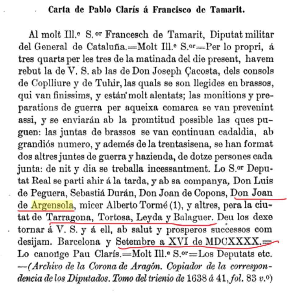 Albanell (1540- ) Austrias Argensola (1629- ) Guerra dels Segadors