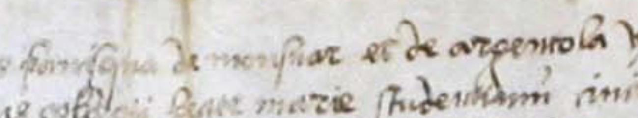 De manera semejante, yo, la señora Elvira de Cervelló que soy la esposa de Guillem de Cervelló, a tí el señor Artall de Artusella, mi hermano, por este dicho cambio que tú y yo hacemos, te doy a cambio, toda la parte que tengo y debo tener en el campo de Alogorus (¿a locorum?) que está en la iglesia de San Juan y se tiene con el campo de don Artall de Alagón. Lo doy íntegramente y sin ninguna retención y con todo cuanto allí me pertenece y debe pertenecerme con todas sus entradas y salidas para hacer allí lo que quisieres. Además te doy, a cambio, todo aquel tributo de avena que yo tengo y debo tener y como lo recibo y debo recibir de los frailes de la milicia del Templo en la villa nombrada Avinazeit. Además te doy, a cambio toda la propiedad que tengo y debo tener en Pedrola y en sus términos. A saber, casas y casales, eras y pajares, campos, viñas y huertos, todo lo yermo y lo plantado; con sus aguas, hierbas, pastos, prados, montes, selvas, bosques y con todas sus pertenencias que allí me pertenecen y deben pertenecerme, todo íntegramente sin ninguna retención desde el cielo hasta la tierra con sus entradas y salidas, sin ningún daño ni mala voluntad. Así es que lo poseerás todo libremente y podrás venderlo, empeñarlo y hacer de ello lo que quisieres, tú y tu posteridad por todos los siglos.