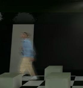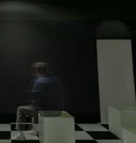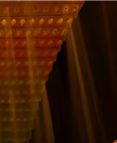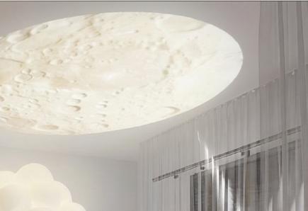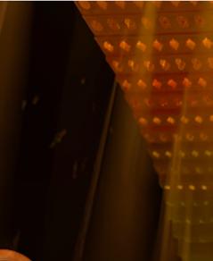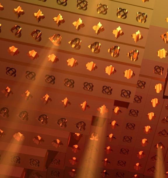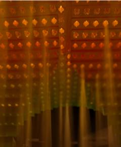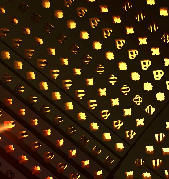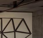 DÉTAIL DES CUBES ACCORCHÉS AU PLAFOND AVEC INSERTION DE LUMIÈRE