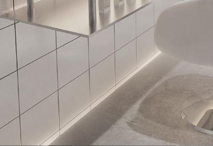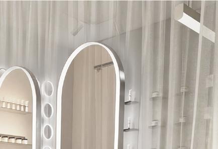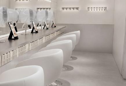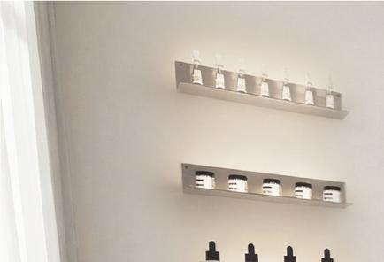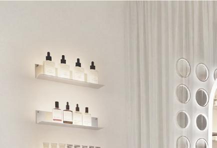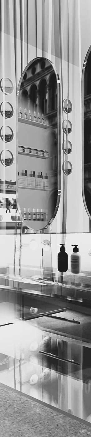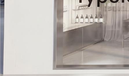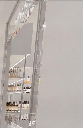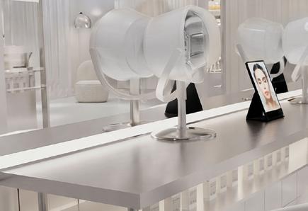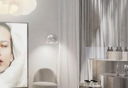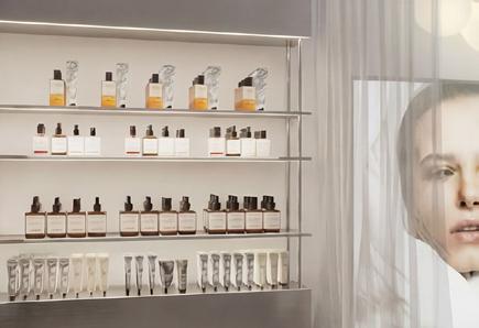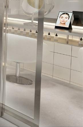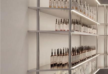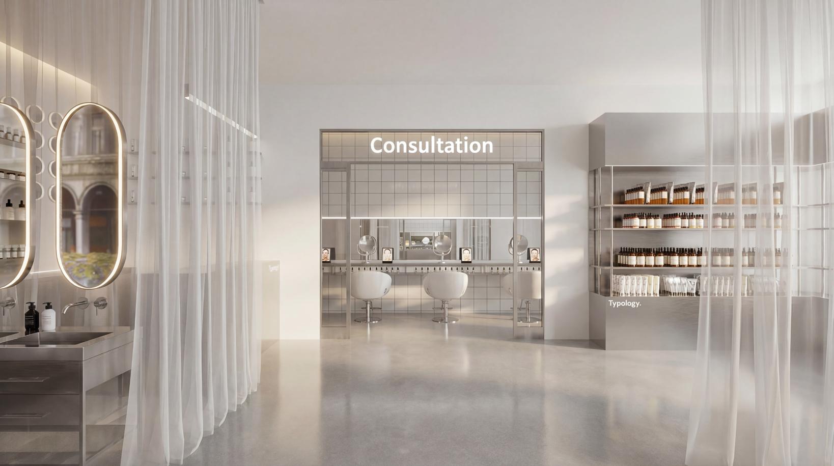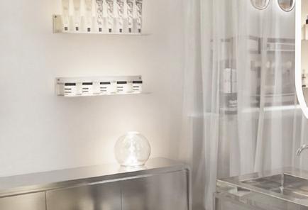 L’aménagement met en scène les valeurs de la marque : transparence des ingrédients, expérience personnalisée, éthique et compositions clean, à travers une esthétique claire, minimaliste et lumineuse. Les surfaces métalliques et les lignes épurées évoquent l’univers du laboratoire et soulignent la dimension scientifique du lieu, avec un espace dédié au diagnostic de peau au cœur de l’expérience.