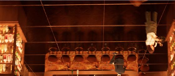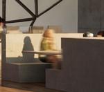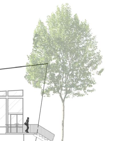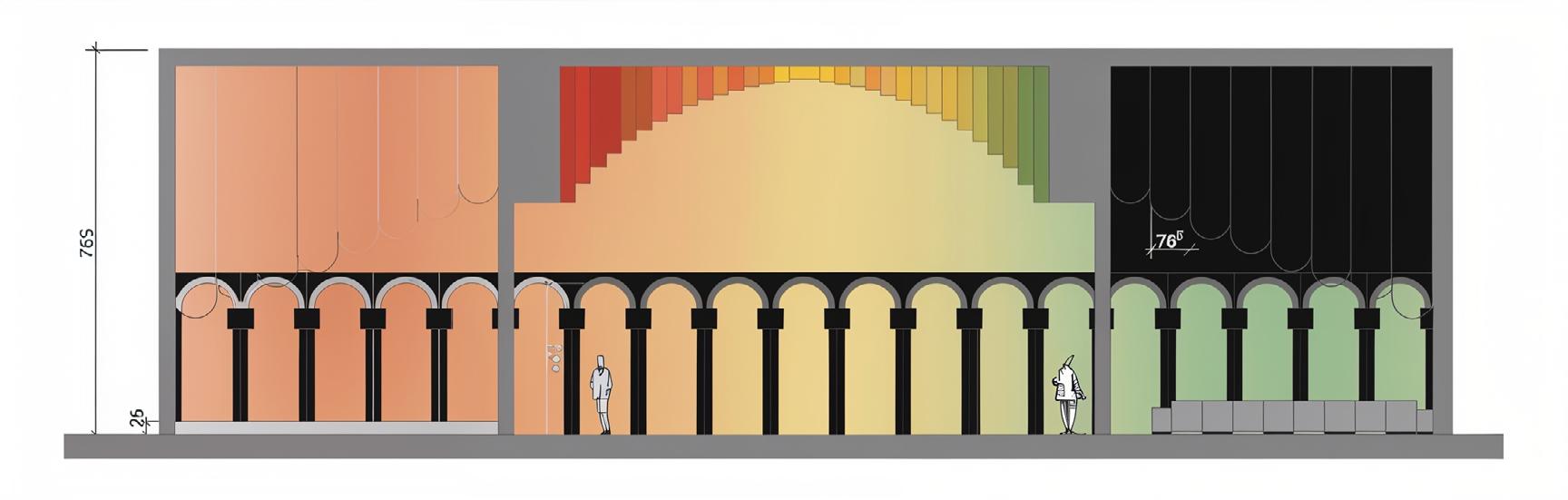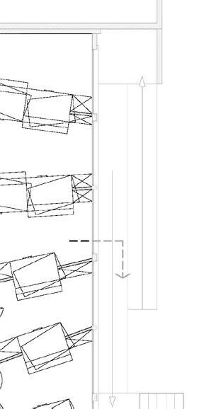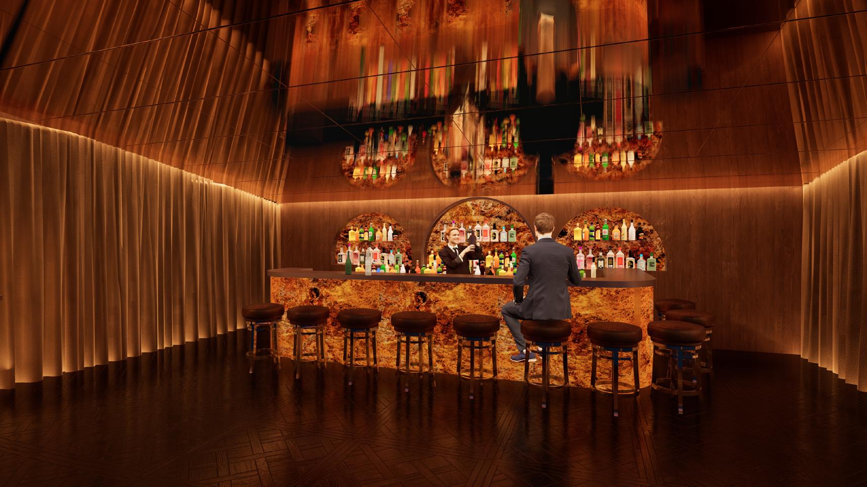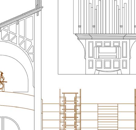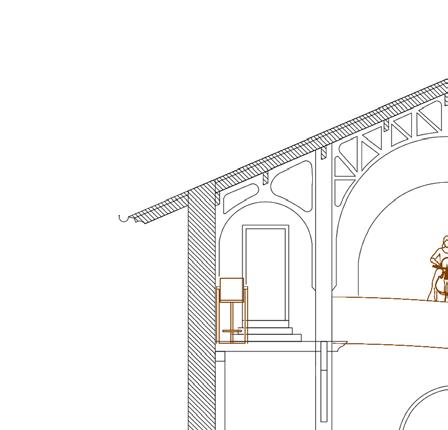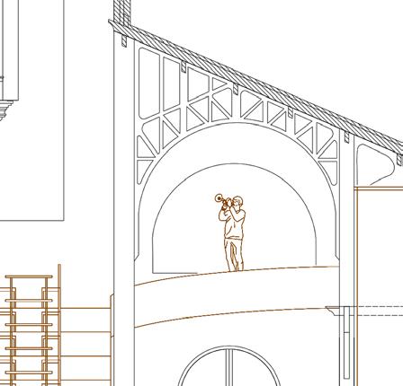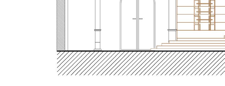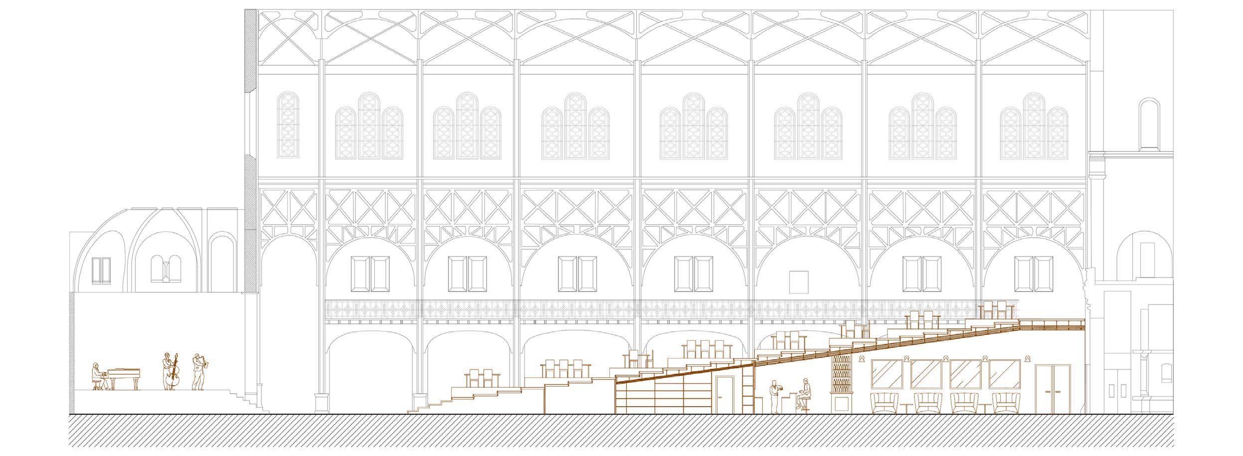 Afin d’offrir de multiples points de vue sur l’église, le restaurant se déploie le long d’un escalier monumental, sous lequel un bar plus intime fait office d’espace de transition pour accueillir les visiteurs. Cette entrée par le bas est conçue pour créer un effet de surprise et d’intrigue.