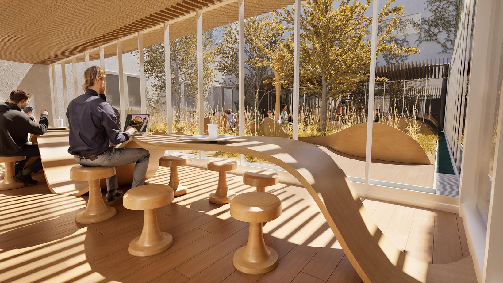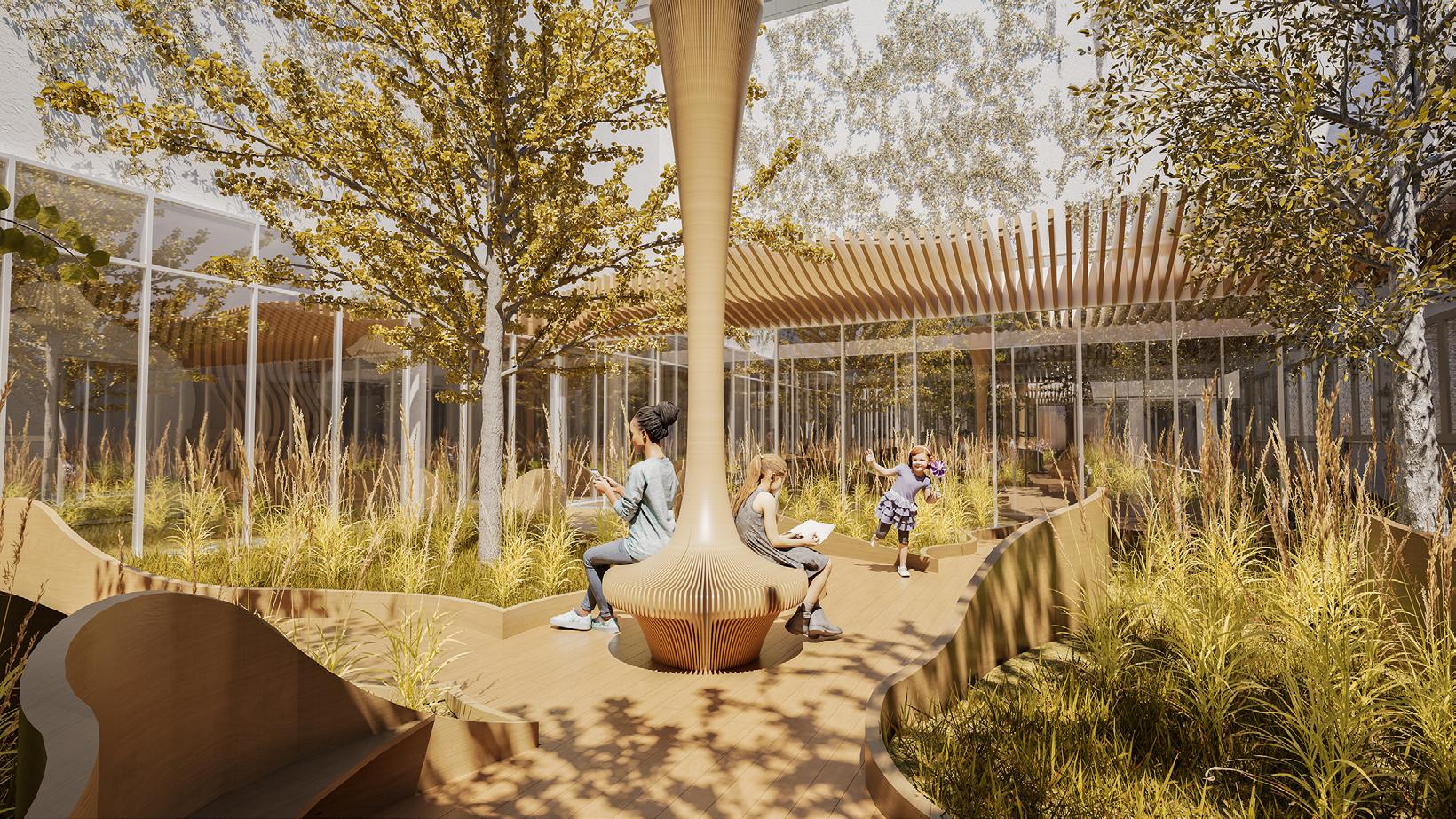 L’objectif de Mycowave est de créer un environnement apaisant et immersif en utilisant des formes biophiliques inspirées des champignons. En effet, les champignons sont un symbole de régénération.