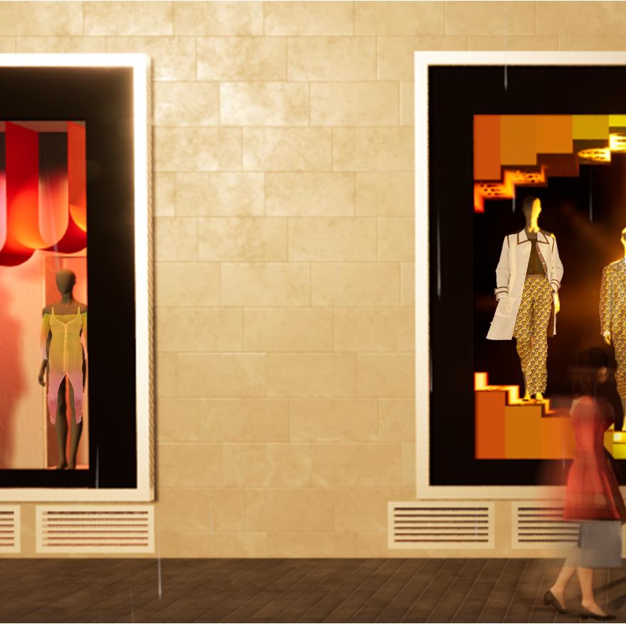 2. Une déclinaison de cette installation adaptée aux vitrines d’un grand magasin.