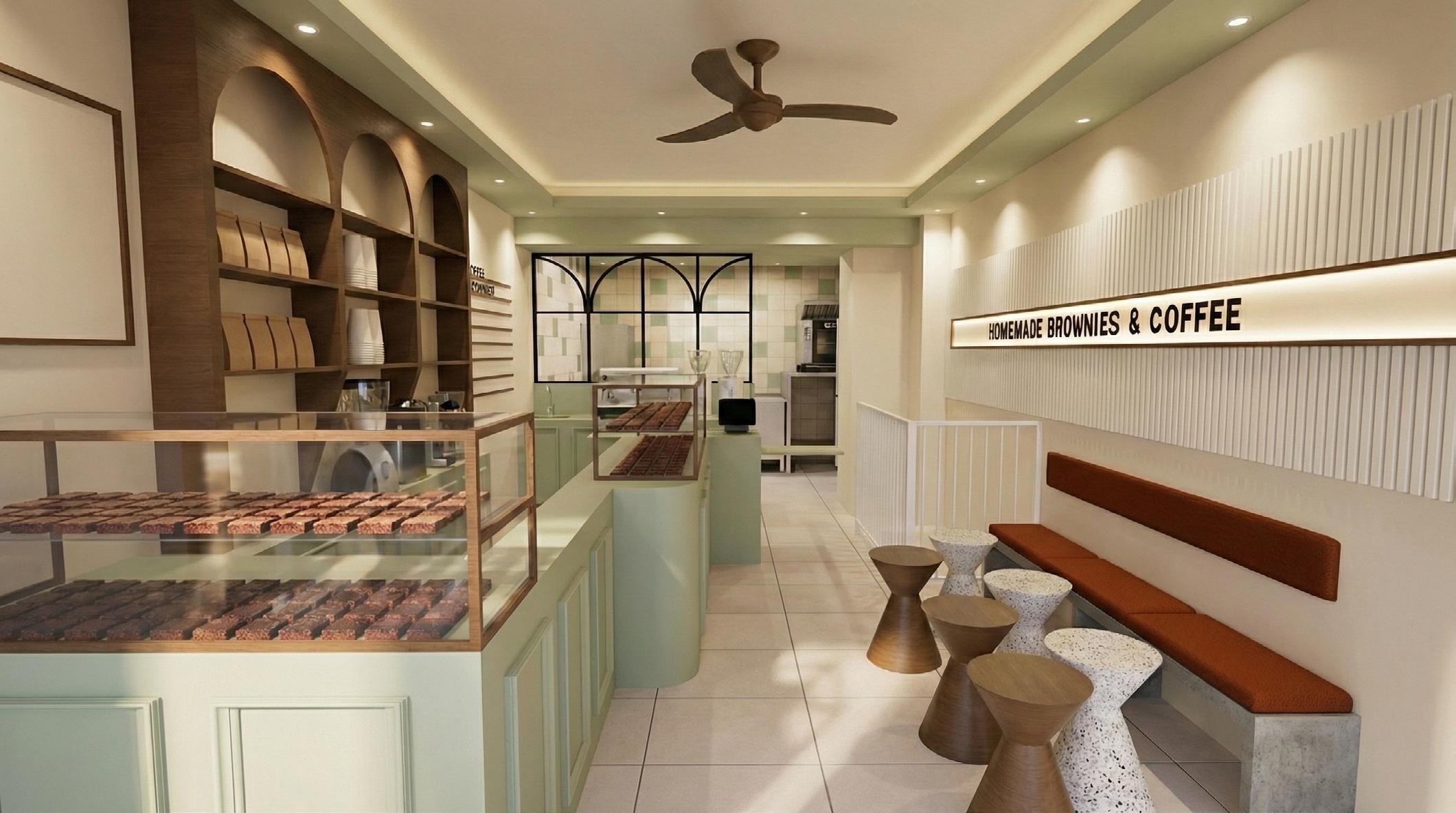 Transformation d’une librairie en coffee shop/patisserie mono produit : le bownie, à Courbevoie.