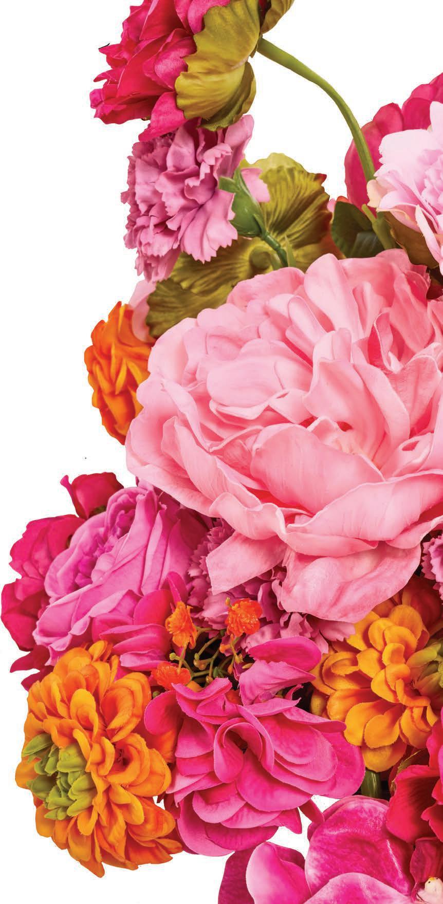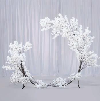 Hoop with Artificial Flowers Available in White Florals with Foliage, Pink Florals with Foliage, Gold Arc Hoop with White Florals and Foliage, Dusty Pink Roses and White and Pastel Pinks.