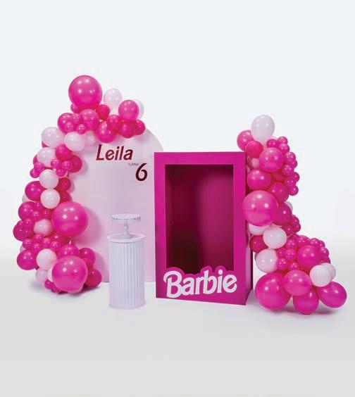 Backdrop Pak29 $999 1 x Barbie Box 1 x Wooden Arch Panel with Personalised Message 1 x 90cm Ripple Plinth 1 x Cake Stand