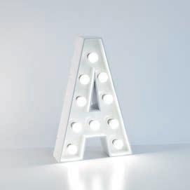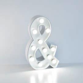 Powder-coated metal marquee letters with built-in lighting. Available in 3 sizes: 60cm, 1.2m, and 1.5m