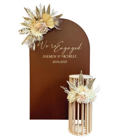 1 x Ripple Arch Panel 2.2m x 1.1m 1 x Acrylic Arch Panel 1.8m x 90cm with Personalised Message