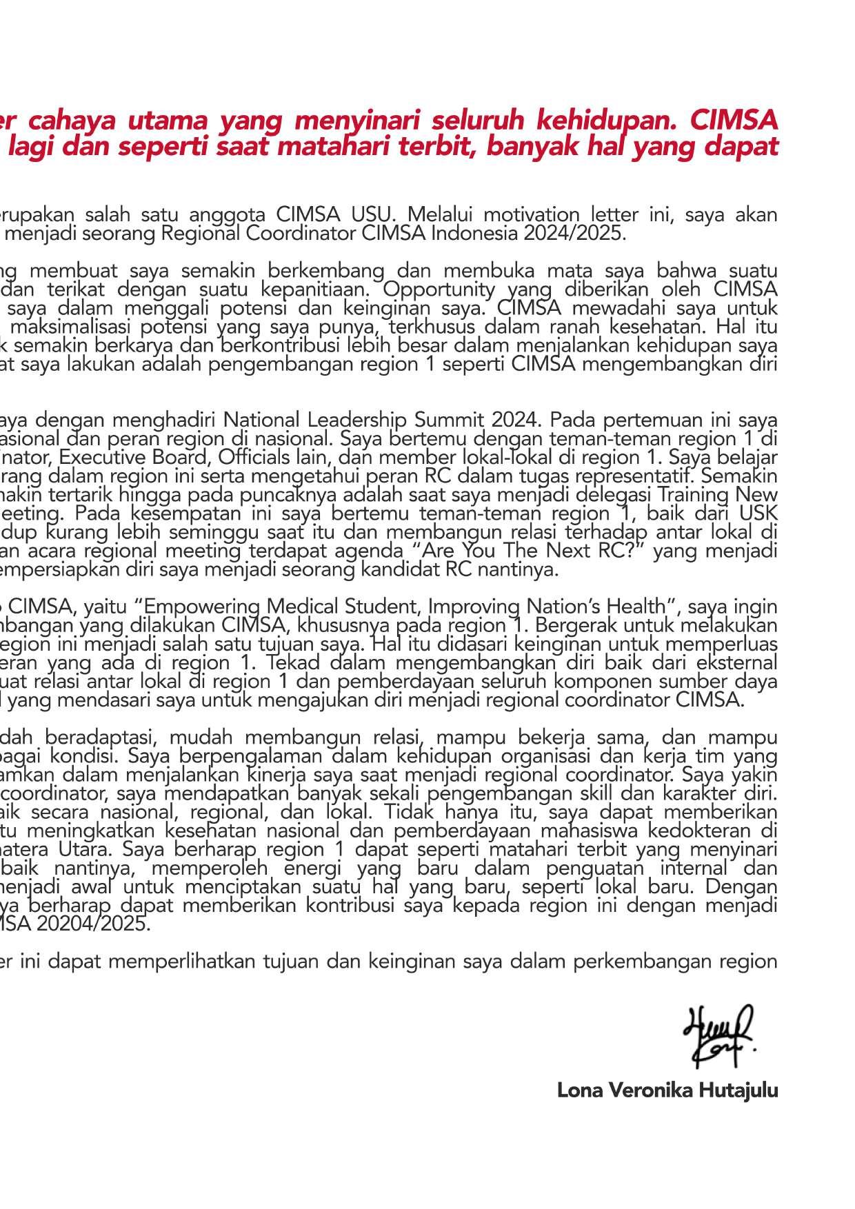 Candidature Plan - Lona Veronika Hutajulu for Regional Coordinator 1 CIMSA 2024/2025