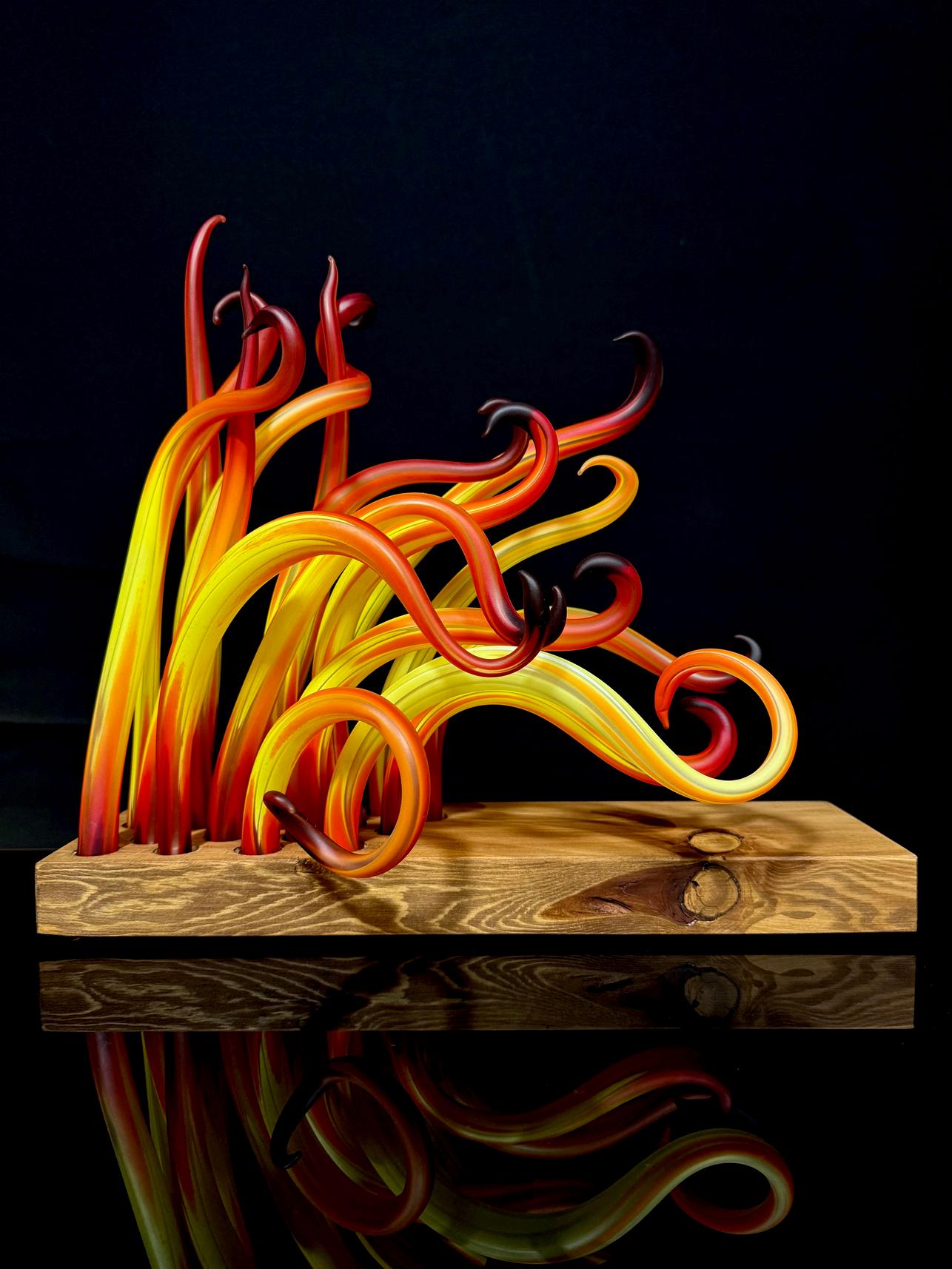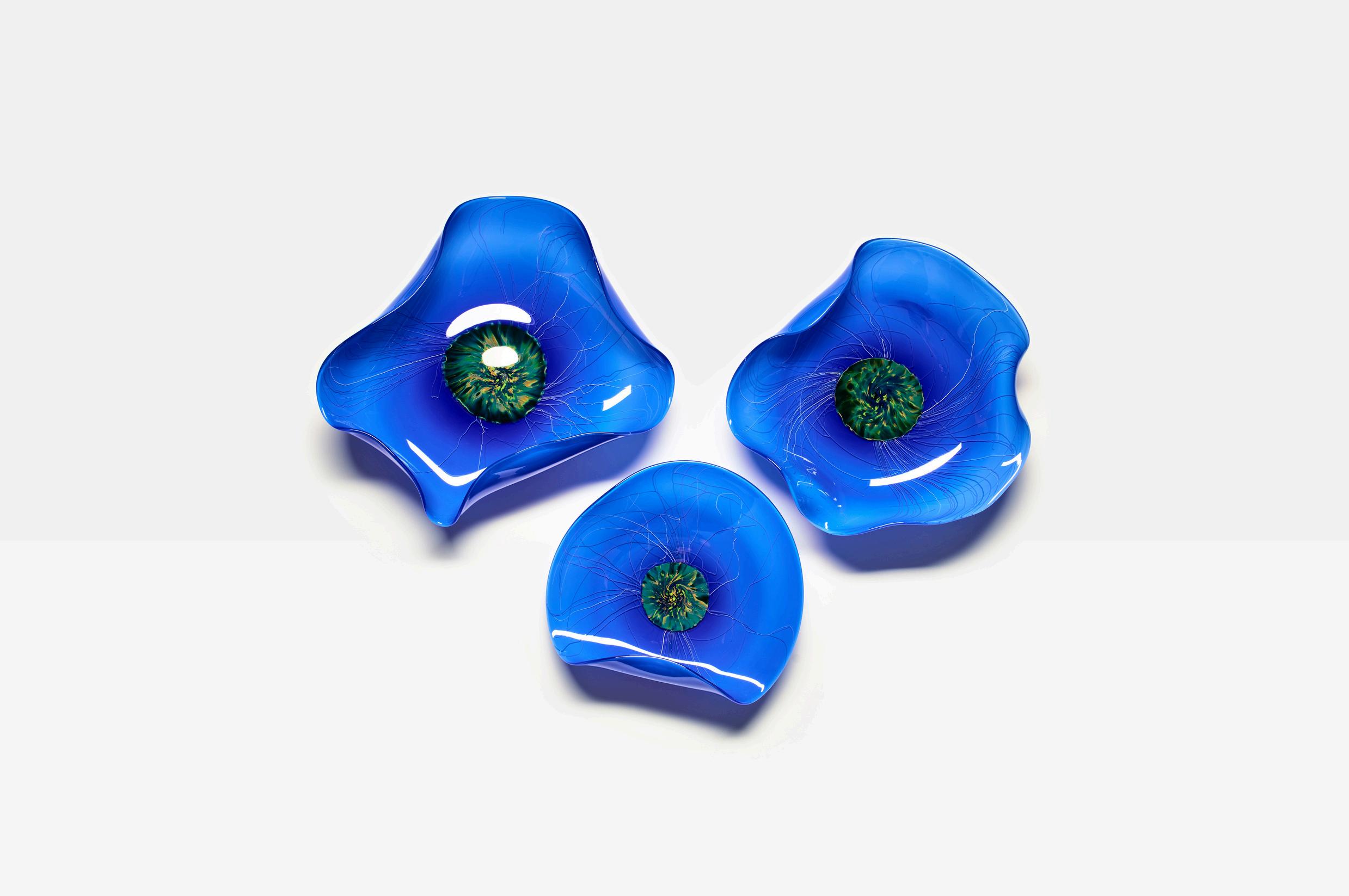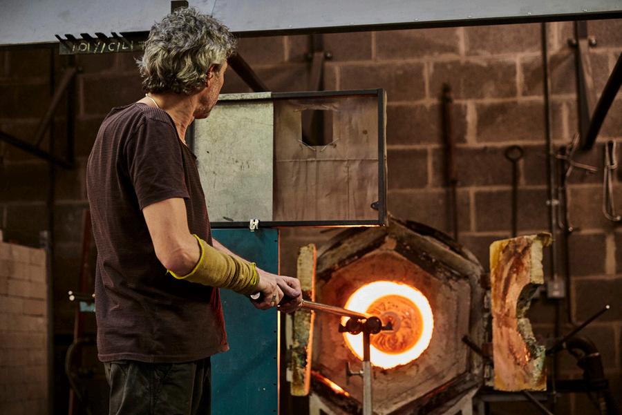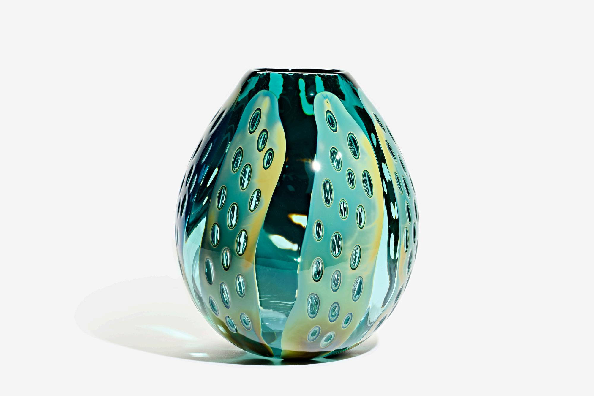 Over his 20-year career with Peter Layton at London Glassblowing, his artistic journey continually pushes creative boundaries, through perfectly controlled yet organic glass explorations of nature's colours and patterns. While technical mastery remains paramount, he has expanded into imbuing works with deeper meaning and powerful messages.