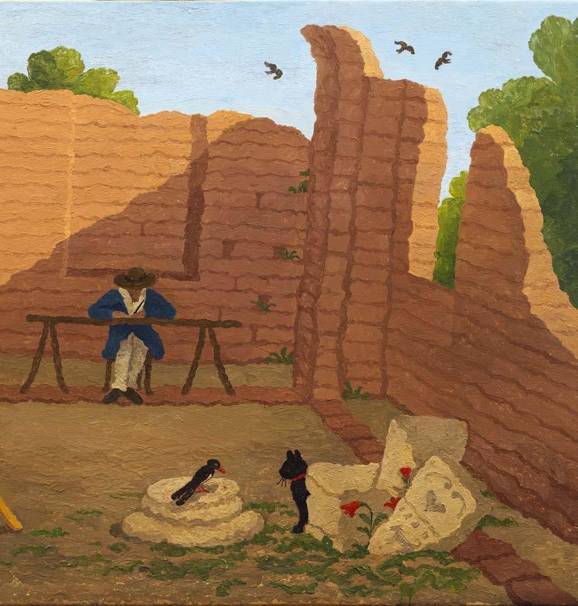 The Lightness of the Days is about memories and reflections on things personal to Ramiro, images that he has kept in his head for years. Ramiro has always lived in Sabadell, a town near Barcelona, which he describes as the Manchester of Spain. His family owned a textile factory where his father and grandfather worked. He started painting abstract works and later he began painting figuratively, finding he needed to explain life in a different language. Over the decades he has stored, like a magpie, a cornucopia of ideas derived from an assortment of sources ranging from naïve paintings, South American literature and his collection of antique textiles.