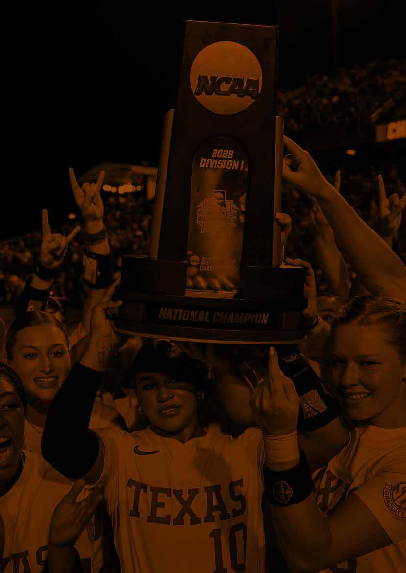 become essential. The Longhorn Foundation relies on the generosity of donors to fund these opportunities and sustain championship-level success. Every membership and every gift directly supports the dreams of our student-athletes—opening doors to an exceptional education, invaluable life lessons, and a future beyond the game. The return on this investment reaches far beyond the Forty Acres, as Longhorn student-athletes go on to lead, serve, and make a lasting impact on the world. After all, what starts here changes the world.