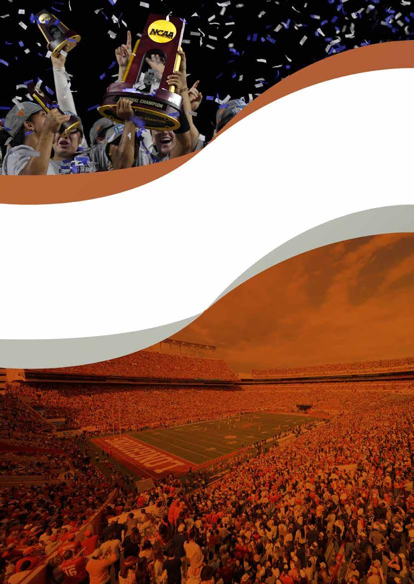A financial commitment to UTC provides the highest level of impact for the 500+ Texas studentathletes competing for the Burnt Orange & White. Your gift will have a profound impact on the lives of Longhorn student-athletes. It will provide resources for academic development, as well as ensuring that our teams have the tools and facilities they need to compete at the highest level. With your support, we can continue to build on the culture of excellence that surrounds the Forty Acres. Investments received today will pay dividends on the future of Texas Athletics’ pursuit of championships.