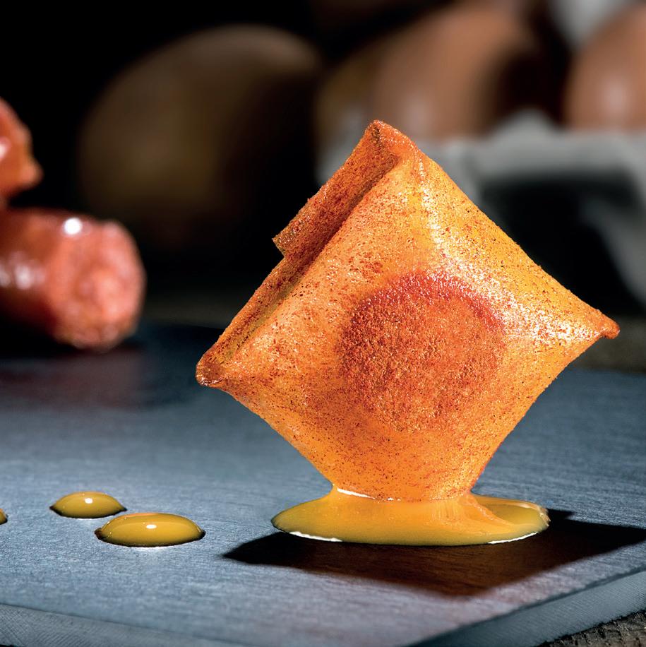 IT La Cocina de Senén, aziendabasca dove lo studio el’applicazione di nuoviconcetticulinari hanno portatoallacreazione delle lamine vegetali disidratate, un prodotto 100%naturale, saporito esalutareche nasce come ingredienteprincipaleper l’elaborazione di un innovativo sushi mediterraneo esiestende poiadun’in nità di snackcroccanti edif ferenti ricettedipasta.Tutte creazioninatenel ristorante Sagartokiche hanno collezionato ipiù prestigiosipremi gastronomici,come il “Pintxos di uovo”, eletto per dueanni consecutivi miglior tapas di Spagna.
