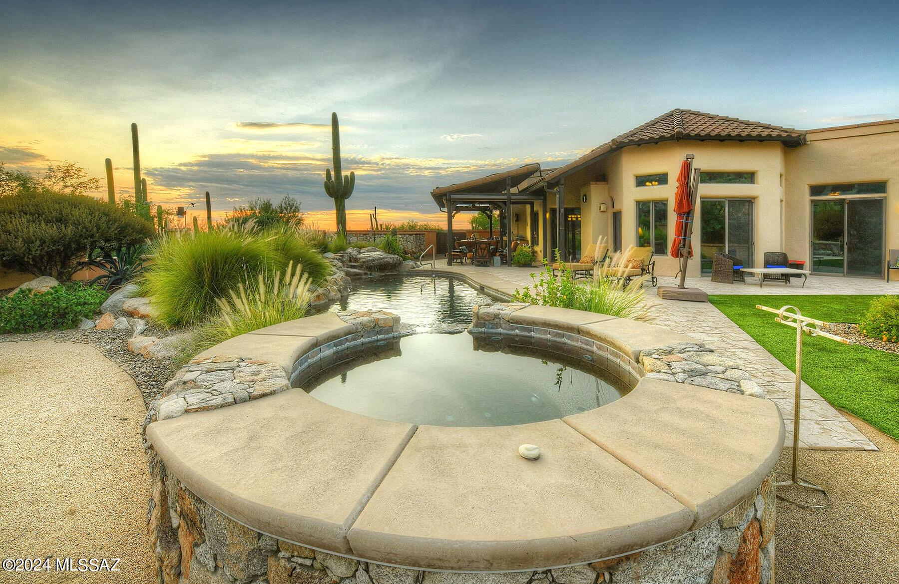 Mediterranean & Southwest architecture blend in this stunning 6 BR 7BA fully furnished sanctuary sitting on 3/4 acre beauty of Sonoran desert tucked away behind the gates of world renowned Canyon Ranch Wellness Resort. Immerse yourself in a year-round privileged Lifestyle with access to first class resort amenities. State of the art Spa, round the clock fitness classes, outdoor activities, hiking, cycling, massages, tennis, pickleball.