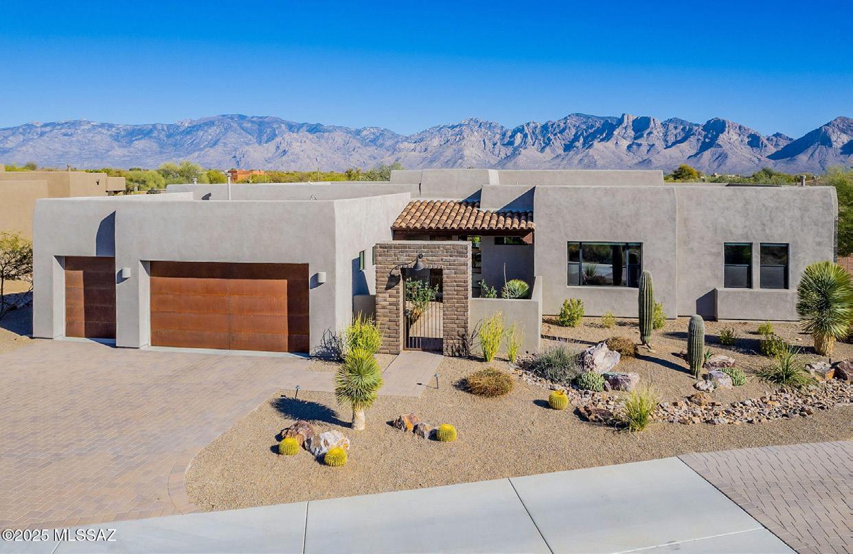 Nestled at the base of the Rincon Mtns in the exclusive X9 Ranch gated commty, this exquisite home boasts spectacular Mountain Views, unparalleled tranquility, privacy & the ability to experience nature like no other! Dramatic sliding glass windows perfectly frame the Rincons, overlooking the sonoran desert & your own oasis complete w/lap pool/spa & huge cov’d patio. Rustic exposed beams, concrete flrs, solid wood drs, high ceils & gas FP. Chefs kitchen w/Viking gas range, dbl ovens, spacious island & SS appl. Luxurious primary has private patio to outdoor living. Terrific craft rm is a hobbyists dream.