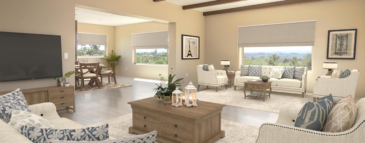 remodeled contemporary home in Skyline Country Club Estates. The single level main home features 3 spacious BRs in addition to the primary BR, reminiscent of a luxurious resort suite that encompasses two walk-in closets, walk-in shower, and a primary BA larger than many bedrooms. The attached guesthouse is adjacent to the 3rd car garage and has a private entrance leading to a comfortable and private space perfect for a multi-generational family, guests, or separate living quarters. The guesthouse is fully equipped with a kitchen, living space, separate BR and BA. Words and pictures alone cannot capture the beauty and function of this expansive property.