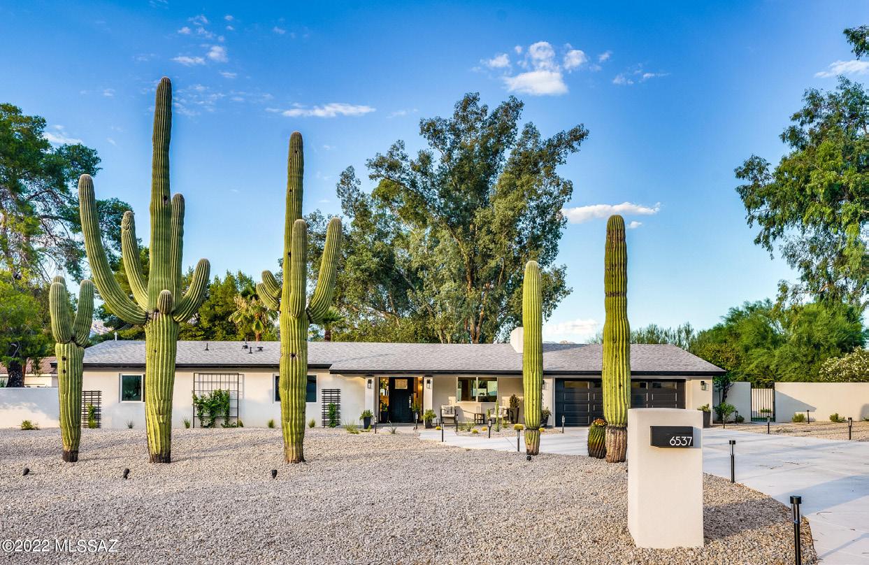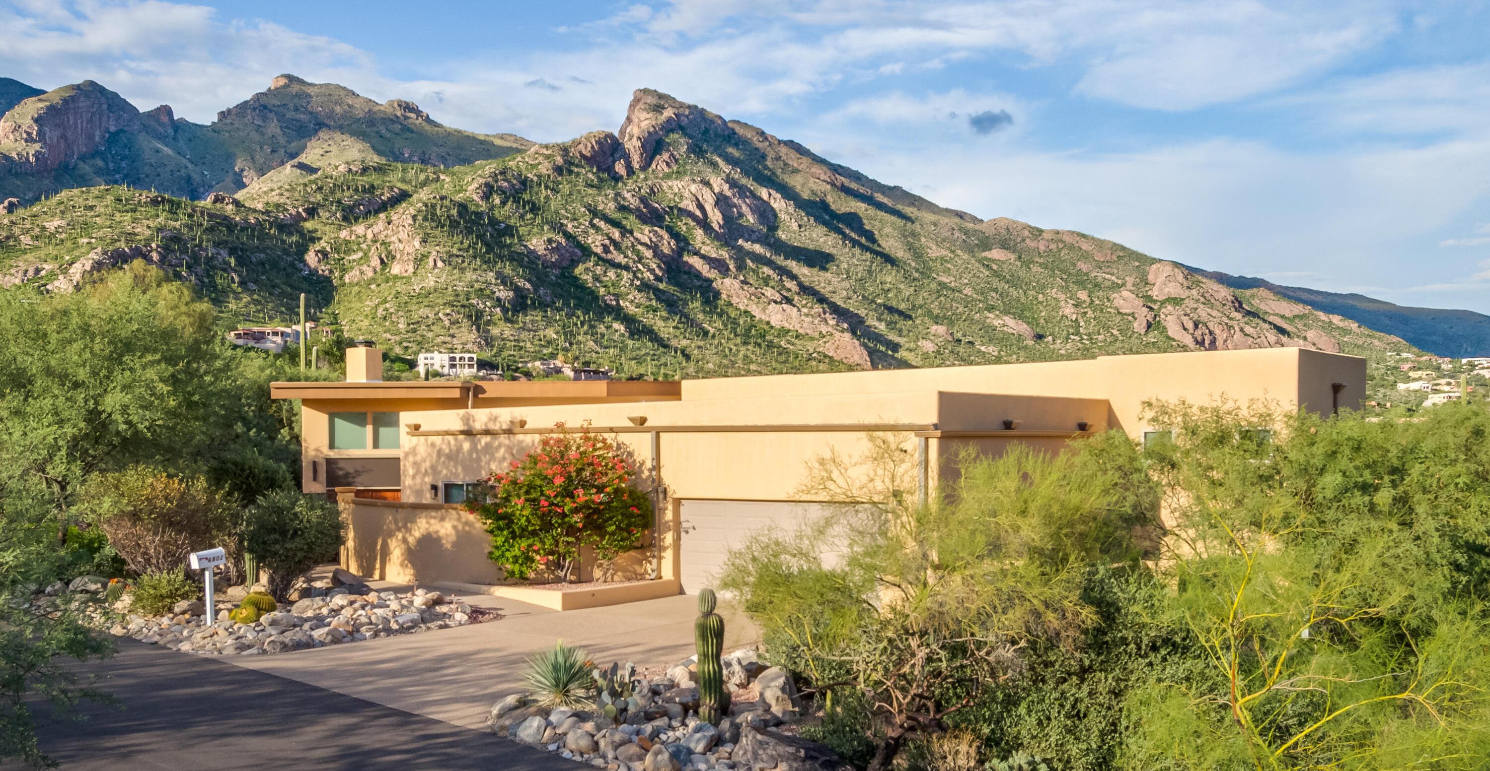in 1973 but almost entirely re-built in 2022 this 3,964sf home has 3BR, 31/2BA plus 1BR, 1BA guest quarters with separate entry on 1.2 acre foothills lot. Amazing views of the Catalina Mountains, Downtown Tucson City Lights & La Paloma Golf Course. Just a short drive or walk north to upscale shopping, galleries, restaurants or head south to downtown or UA’s campus in a matter of minutes. Professionally designed by award-winning Dorado Designs specializing in custom interior design & remodeling. All New kitchen, baths & porcelain tile flooring. Almost all new doors & windows, newer roof, new interior & exterior paint, new driveway.