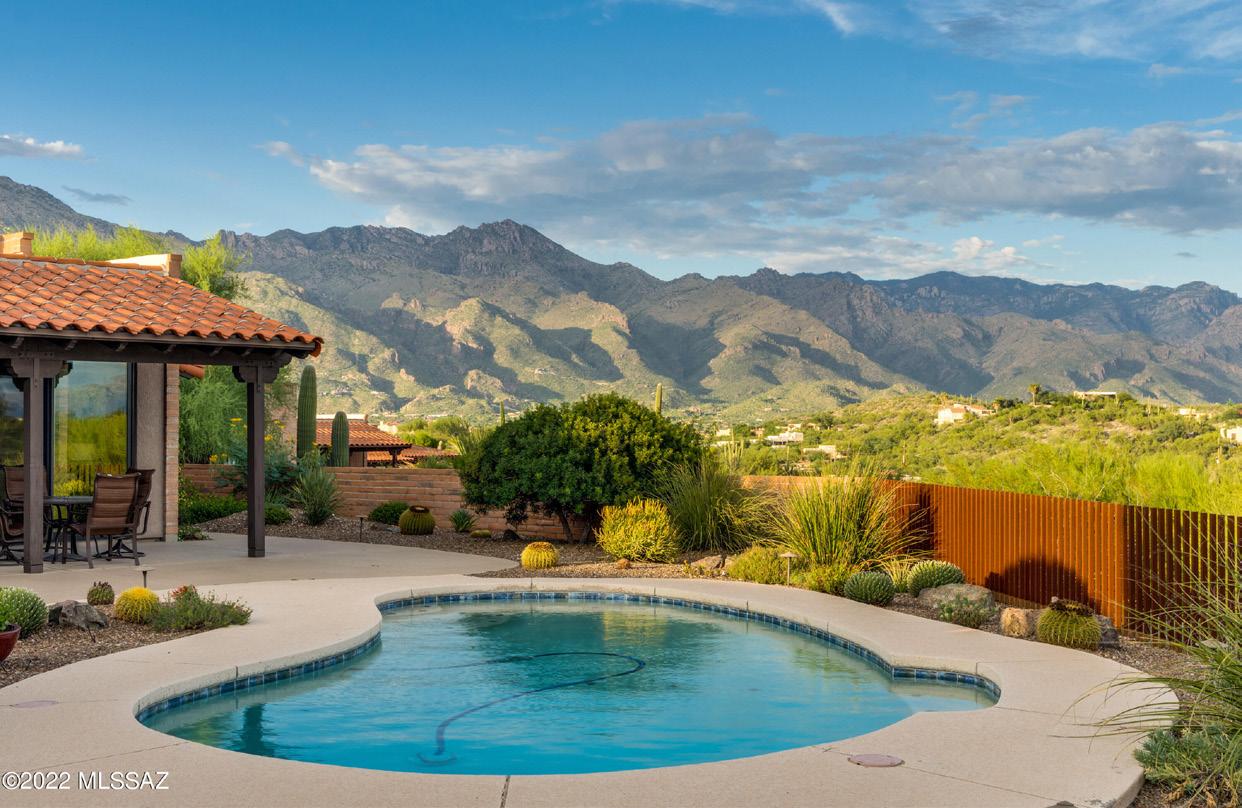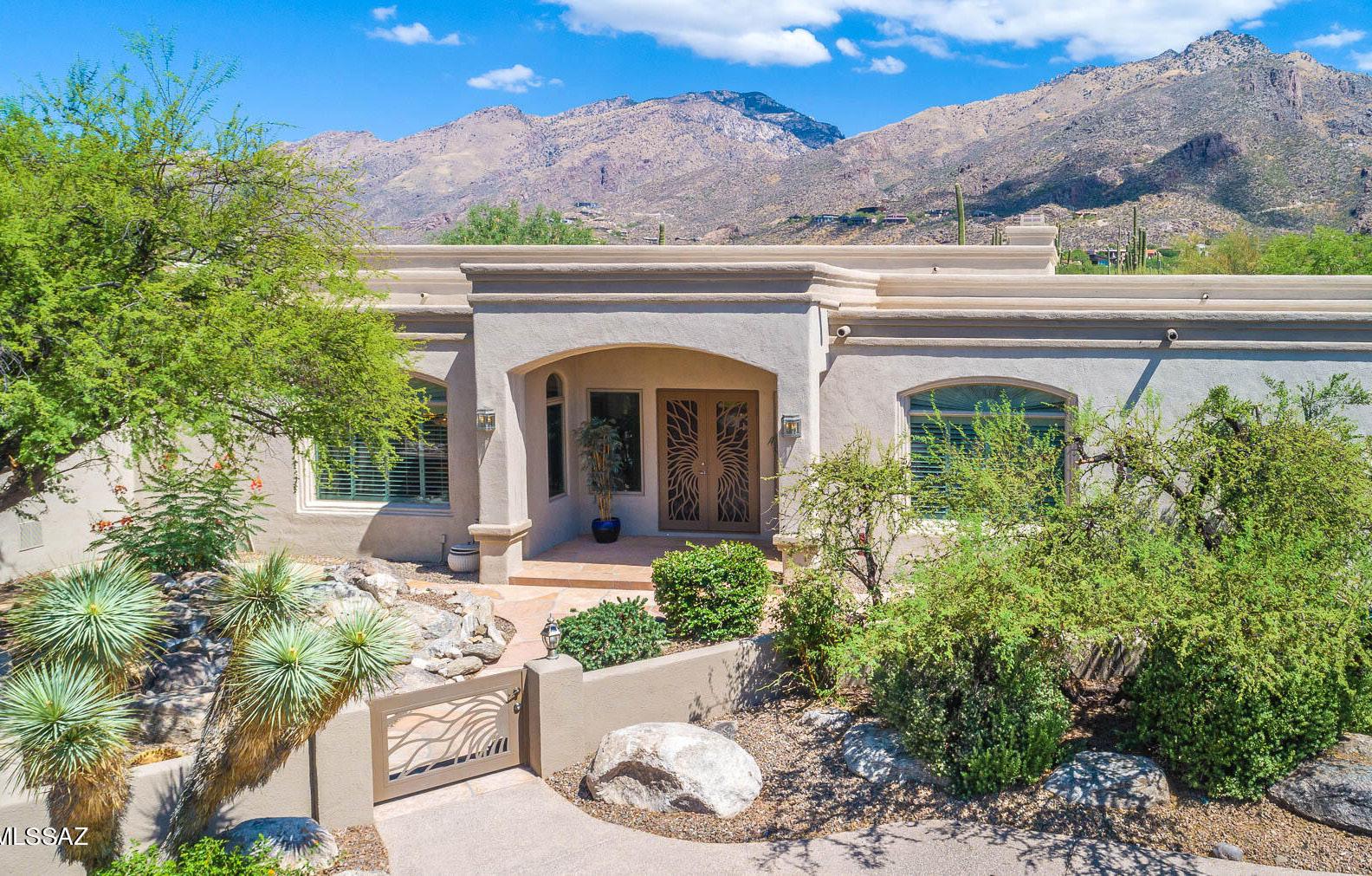 Spectacular Catalina Foothills custom estate with resort-like feel lies in a private, gated enclave. This sale includes two parcels totaling 3.29 acres. Boasting panoramic mountain & city views, this 4BD/4BA (4,449 sq ft) home greets you with a courtyard waterfall. Entertain in the large gathering room with view windows, media wall with fireplace and formal dining room beyond. Perfect for the most discerning buyer!