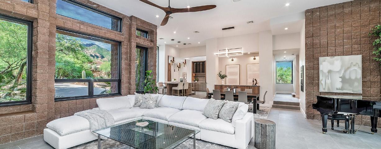 Perched atop the majestic and breathtaking Catalina Mountains, this oneof-a-kind modern masterpiece indulges all the senses and conveys the stunning desert southwest lifestyle on a highly desired 4.31-acre hilltop lot at the very top of Swan Road, in the coveted Summit gated community. Luxurious attention to detail in every living space of this oasis in the desert. Stunning floor to ceiling sliding windows.