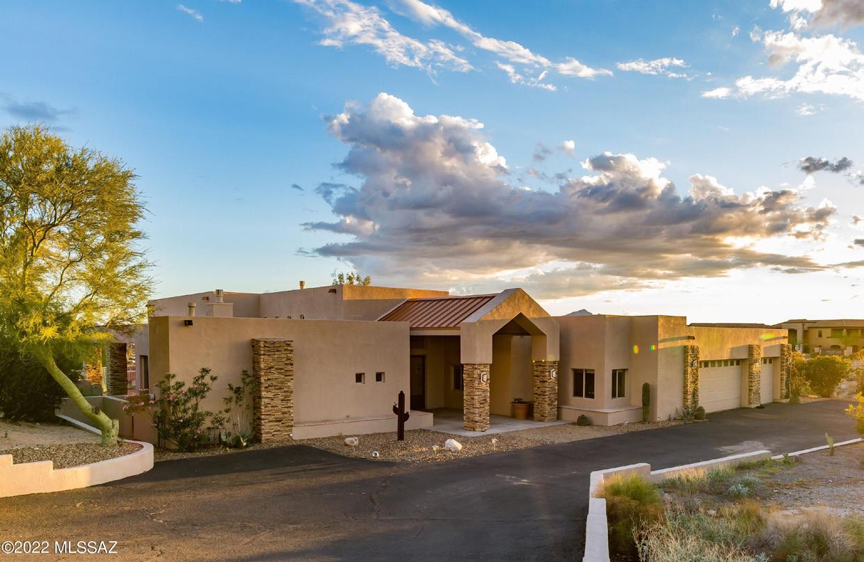 Live the Tucson lifestyle! Location, location. This incredible ridge side soft contemporary with its own private gate has it all. Views from every room! Security! Privacy! Tucson Rolling Shutters on all windows and glass sliding doors. Any chef would love this modern kitchen with 2 sub-zero column refrigerator/freezers and wine cooler. Bosch dishwasher, Wolf induction cooktop. Possibilities are endless.
