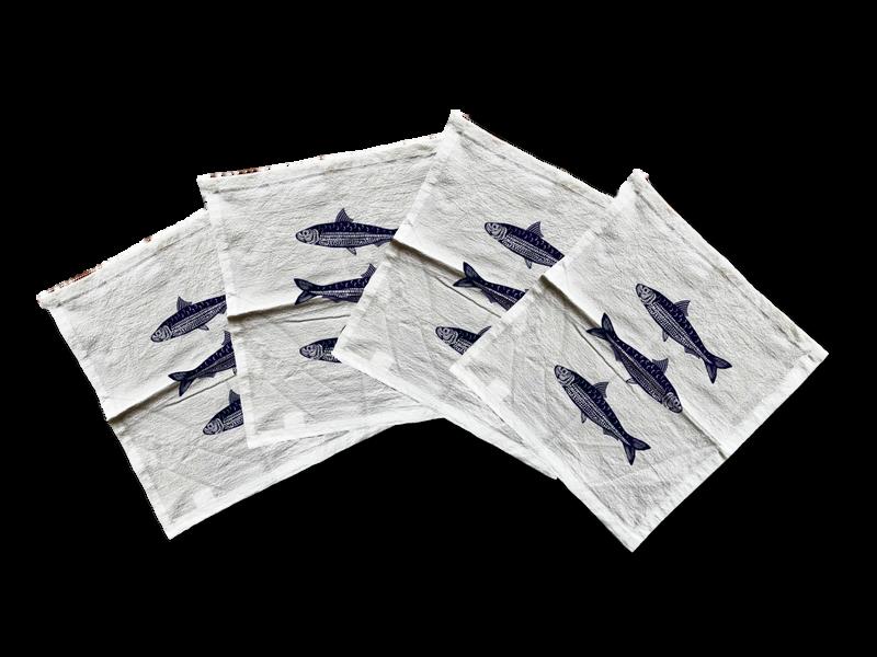 Hand printed the same way as the tea towels, sets of four cotton napkins make perfect gifts for all occasions.