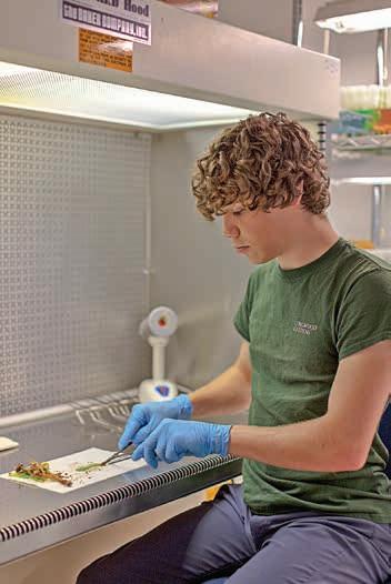 Above: Research Intern Cole Geissler has been learning the basics of plant tissue culture to support ongoing research and maintenance of laboratorybased projects. Here he can be seen cleaning and transferring cannas that will one day be on display in the Conservatory. Photo by Daniel Traub.