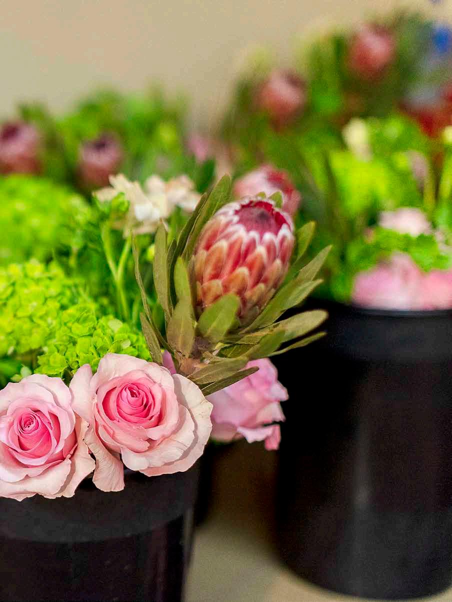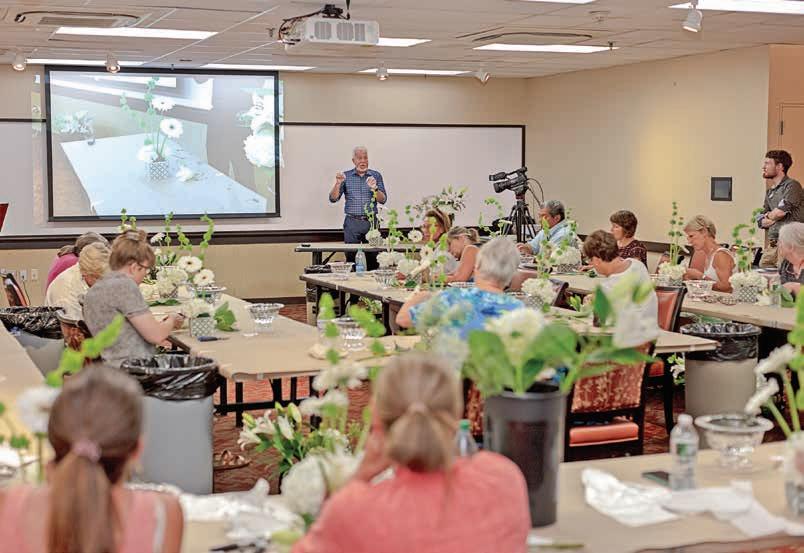 Right and below: Internationally renowned floral designer Tim Farrell leads a hands-on workshop on rhythm in floral design during a Continuing Education class at Longwood.