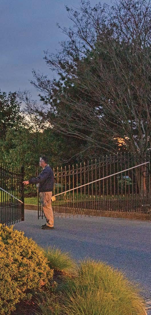 Public Safety Officer Robert Detweiler takes a quiet moment to unlock the Visitor Center Entrance Gate at 5:30 am, while a flurry of activity happens inside to ready the Gardens for that day’s guests. Photo by Daniel Traub.