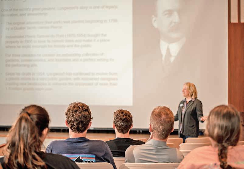 Opposite Bottom: Director, Learning and Development Veronica Chase leads a new staff orientation session—part of Longwood’s multi-faceted onboarding program—in the Visitor Center Auditorium.