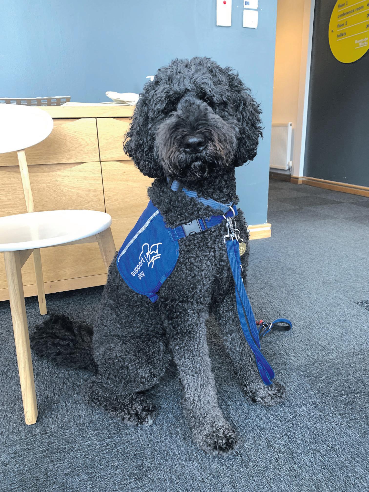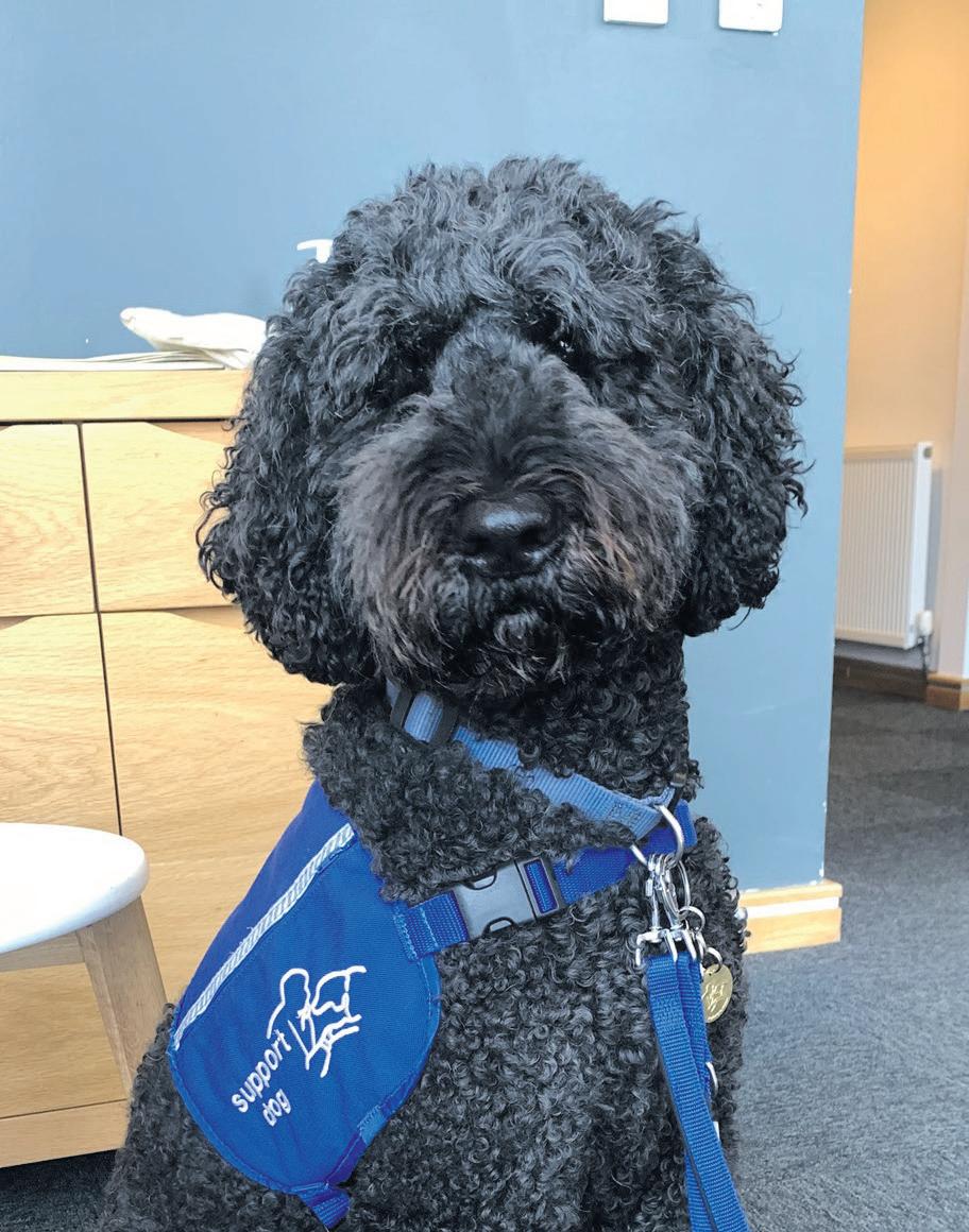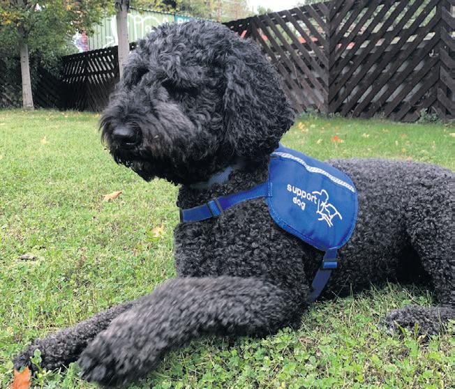 Support dogs like Springapoo Luna, Golden Doodle/Labradoodle cross Rafa, Labrador/Poodle/Golden Retriever cross Nikey, and Newfypoo Lottie are sought-a er so they can slot into the lives of clients who have allergies, or whose family members have allergies.