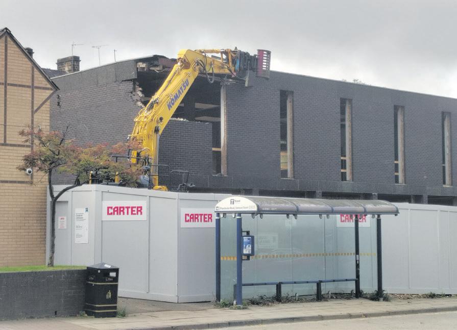 The demolition of an iconic building in the Town centre of Stocksbridge has begun.