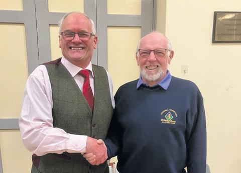 Choir chairman Alf Pearson (pictured right with Gordon), remarked that it was a long time since they had played football together as boys in the yard at Castle Farm where Gordon has lived all his life and where Gordon’s late father Arnold had farmed. Both father and son have been strong supporters of the choir as is Gordon’s wife Carol, who as secretary of the village hall, does so much to look a er the choir’s interests.