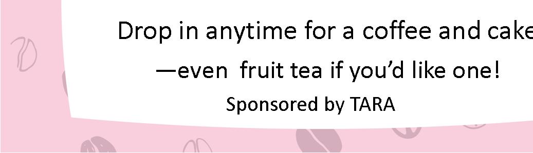 27 TARA Co ee morning & free ra e 10:15 - 11.45 am Christian Centre, Cedar Road, S36 1AS Drop in anytime for co ee and cake (or even fruit tea)