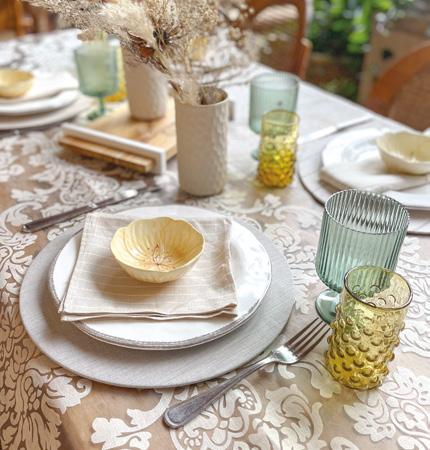 o un desayuno especial, las creaciones de Adriana permiten integrar texturas, formas y tonalidades que suman al concepto general del table setting.